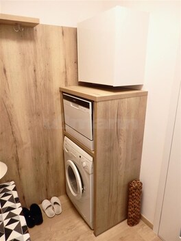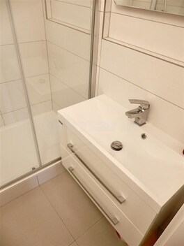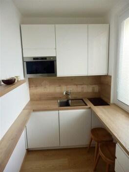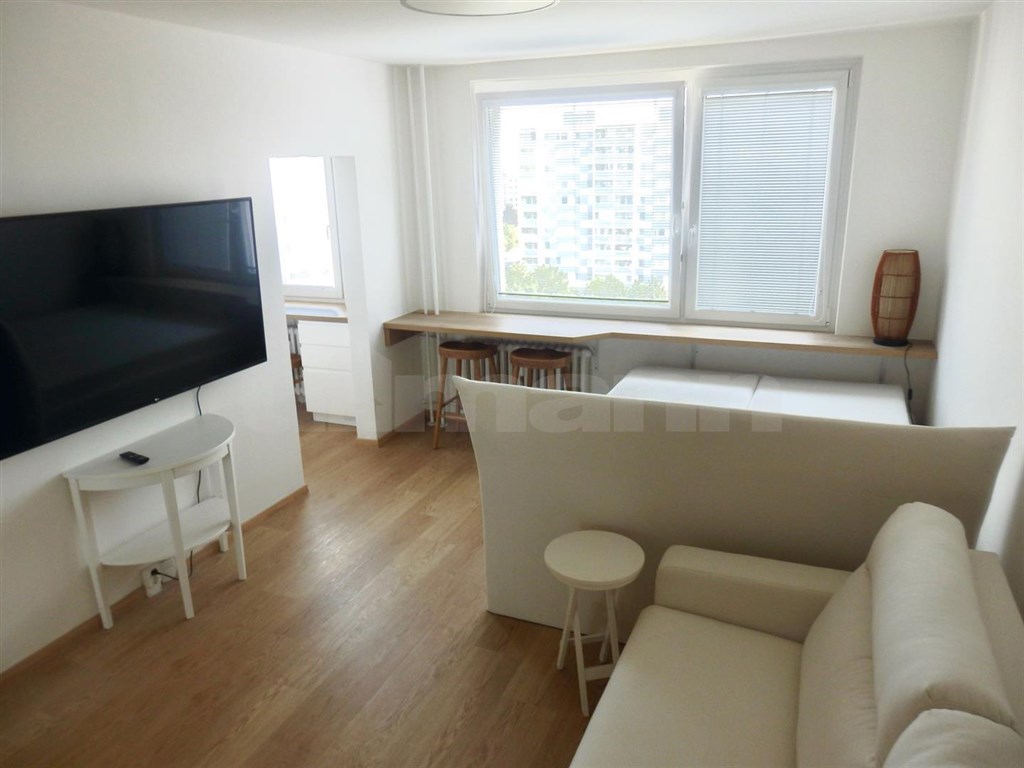 Zprostředkujeme Vám prodej velmi pěkné bytové jednotky 1+1 o ploše 29 m2, nacházející se v 7.patře panelového domu s výtahem, v ulici Brechtova, Praha 4 - Háje. Bytová jednotka prošla v roce 2021 velmi vkusnou a kvalitní rekonstrukcí (zděné jádro, rozvody vody a elektřiny v koupelně a v kuchyni, štuky, vinylová podlaha, kuchyňská linka, dveře, okna). Po rekonstrukci nebyla bytová jednotka ještě užívána. Bytová jednotka je v družstevním vlastnictví s nulovou anuitou a zatím bez možného převodu do osobního vlastnictví. Vstupem do bytu se ocitnete v předsíni (3,77 m2) s věšákovou sestavou s botníkem a důmyslně umístěnou skřínkou se zabudovanou pračkou a myčkou nádobí. Naproti vstupu do bytu se nachází koupelna (3,2 m2) propojena s WC, kde je kromě umývadla se zrcadlem ještě prostorný sprchový kout. Po pravé straně předsíně se vstupuje do obývacího pokoje (18,4 m2) s vestavěnou skříni, manželskou postelí, rozkládací sedačkou (cena postele a sedačky není v ceně bytu), televizí, stolkem a masívním parapetem pod oknem, kterého plocha je částečně zvětšena na pracovní plochu se dvěma židlemi. Obývací pokoj je průchozí s kuchyní (3,6 m2), kde je umístěna kuchyňská linka s vestavěnou troubou, lednicí, dřezem a indukční varnou deskou. Pracovní deska kuchyňské linky pokračuje pod okno, čímž vznikla nejenom větší pracovní plocha, ale zároveň tím vzniknulo místo i pro rychlé stolování. Na podlaze obývacího pokoje, kuchyně a předsíně je položena vinylová podlaha, v koupelně s WC je dlažba. Orientace bytu je na severovýchod, v bytové jednotce je zavedena telefonní přípojka s možností instalace internetu, k bytu přináleží také sklep (1 m2) v 6 patře. Poplatky na byt činí 4.515 Kč, plus zálohové platby na elektřinu. Dům prošel také kompletní rekonstrukci, kromě renovace vnitřních prostorů jednotlivých pater, schodiště, výměny výtahu a stoupaček, byla provedena výměna oken a zateplení fasády. V blízké budoucnosti je plánovaná ještě rekonstrukce vchodu a vstupních prostorů domu. Dopravní dostupnost a občanská vybavenost je v této lokalitě na velmi dobré úrovni, jenom pár metrů od domu je vzdálená Základní a mateřská škola, Penny Market, dětské hřiště, sportovní hala, plavecké bazény, nebo Hostivařský park s přehradou. Jenom 3 min. pěšky je vzdálená zastávka autobusu (č.197,170,154,203 a 905) s dostupností na metro Háje. Do 10 min. autem se dostanete do zábavního a nákupního centra VIVO!Hostivař, nebo do 5 min. do zábavního a nákupního centra Westfield Chodov. V případě, že hledáte plochou menší bytovou jednotku po kvalitní a vkusné rekonstrukci, pro vlastní bydlení, nebo jako investici, s vynikající občanskou vybaveností a dopravní dostupnosti, s dostatkem zeleně s možností oddechu a sportovního vyžití, tak Vám mohu koupi této bytové jednotky upřímně doporučit. Pro tuto nemovitost Vám můžeme zajistit úvěr až do výše 3,5 milionu korun, s úrokovou sazbou 5,9 % a dobou splatnosti až 20 let, bez nutnosti zástavy jiné nemovitosti.