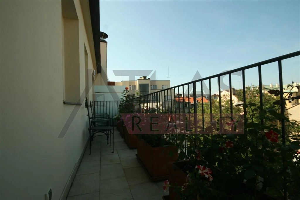 Pronájem kompletně zařízeného luxusní garsonky 38 m2 ve 4. patře s výtahem v prestižním klasickém secesním domě s vysokými stropy a originální výzdobou po kompletní rekonstrukci, která proběhla v roce 2006. Dům se nachází v residenční oblasti historického centra Prahy, jen 200 m od parku Riegrovy sady, 300 m od stanice metra trasy "A" Náměstí Míru sady a 500 m od Václavského náměstí stanice metra Muzeum trasy A a C a nákupního a kulturního centra Prahy. Byt je kompletně zařízen pseudostarožitným italským nábytkem. Ve spodním patře je obývací pokoj 28 m2, s kuchyňským koutem vybaveným lednicí s mrazákem, myčkou, plynovým sporákem, digestoří, koupelna s umyvadlem, rohovou vanou, WC a bidetem, byt má terasu 4 m2 se vstupem z pokoje. Byt má telefonní linku, rychlý internet, TV, satelit, na podlahách parkety a dlažba, při rekonstrukci byly použity nadstandardní materiály. V domě jsou vybudovány podzemní garáže, výtah, na dvoře domu je velký bazén 8 x 11 m hluboký 1,2 metru s hydromasážním koutem, obklopený terasou a zelení. V domě je také kamerový systém, ostraha a správce. Poplatky četně energií cca 450 EUR.