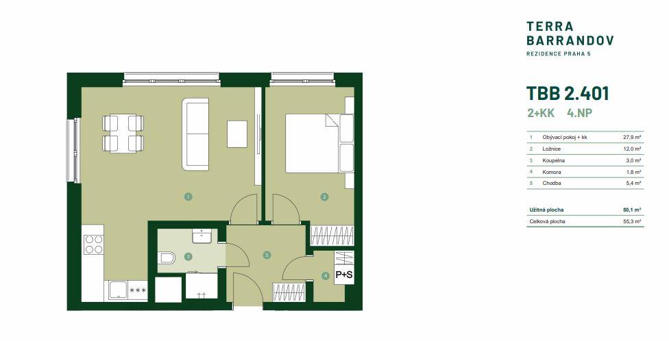 Terra Barrandov Praha 5, ulice Silurská 2+kk 55,3 m2 v 5. patře Orientace bytu: ZS Nabízíme moderní byt 2+kk v 5. patře prestižního projektu Terra Barrandov. Tento prostorný byt s praktickým uspořádáním a vysokým standardem nabízí ideální prostředí pro komfortní život. Dispozice zahrnuje velký obývací pokoj s kuchyňským koutem a ložnici. Koupelna je zařízena sprchovým koutem a toaletou. Je zde praktická komora a předsíň s dostatkem úložných prostor. K bytu náleží sklepní kóje. Možnost dokoupení garážového stání. Součástí bytu jsou technologické prvky, které výrazně zvyšují komfort bydlení, a zároveň přispívají k energetické úspornosti: podlahové vytápění, systém dochlazování a řízené větrání s rekuperací. Tyto standardy zajišťují příjemné vnitřní klima během celého roku a nižší provozní náklady. Byt je navržen s důrazem na funkčnost a každodenní pohodlí, nechybí kvalitní materiály, dostatek denního světla, ani promyšlené dispoziční řešení. Projekt Terra Barrandov nabízí nejen moderní bydlení, ale také prostředí podporující komunitní život. Obyvatelé mohou využívat sdílené prvky, jako je komunitní zahrada se skleníkem, klubovna, dětské hřiště nebo místo na grilování. Obyvatelé mají navíc k dispozici společnou střešní terasu. Projekt je rozvržen do několika objektů, což přispívá k většímu soukromí, klidné atmosféře a příležitostem ke komunitnímu setkávání. Lokalita Silurské ulice na Barrandově nabízí výbornou dostupnost do centra Prahy, pouhých 8 minut MHD, a zároveň přírodu doslova za rohem. V okolí najdete mateřskou i základní školu, obchody, lékárnu, kavárny, hřiště i několik zastávek tramvaje a autobusu. Milovníci přírody ocení blízkost Chuchelského háje s Mariánským pramenem nebo vyhledávaného Prokopského údolí, ideálního pro běh, procházky i cyklistiku. Nabídka je vhodná doslova pro všechny, jak pro páry, rodiny s dětmi, ale i jako investiční nemovitost pro dlouhodobý pronájem. Díky spojení praktické dispozice, kvalitního provedení, šetrných technologií a atraktivní lokality jde o zajímavou příležitost s dlouhodobou hodnotou. V případě zájmu nás neváhejte kontaktovat a navštivte klientské centrum developera JRD, kde již brzy bude možné využít virtuální prohlídku a vzorkovnu nabízených standardů. V nabídce je celkem 225 bytů různých velikostí od 1+kk po 4+kk, které jsou navrženy tak, aby vyhovovaly rozmanitým potřebám budoucích obyvatel. <a href="https://www.eurobydleni.cz/byty/1_kk/praha-5/obec-hlubocepy/prodej/"><strong>Prodej bytu 1+kk Praha 5, Hlubočepy</strong></a>
