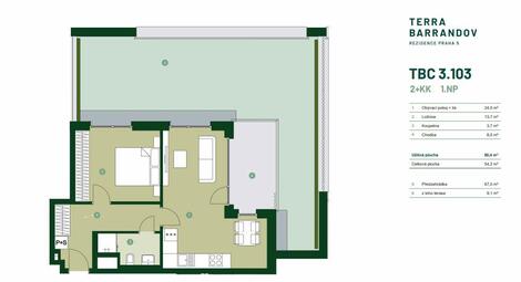 Terra Barrandov Praha 5, ulice Silurská 2+kk 52,8 m2 s lodžií 7,5 m2 v 7. patře Orientace bytu: ZJ Nabízíme moderní byt 2+kk v 7. patře…