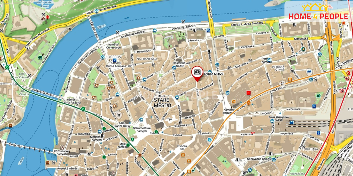 Zprostředkujeme Vám prodej zrekonstruováno bytu o dispozici 2+1 o velikosti 64 m2 v ulici Rybná, Praha 1 - Staré Město. Byt se nachází ve 2.NP (1. patro) pětipodlažního rekonstruovaného domu z roku 1905 s výtahem v historickém centru Prahy, 450 m chůzí na Staroměstské náměstí. Byt disponuje: obývacím pokojem, ložnicí, jídelnou s kuchyní, předsíní, koupelnou s vanou a samostatným WC. Na podlaze je položena kvalitní dřevěná podlaha a dlažba. Výška stropů v bytě je 320 cm. Nová dřevěná špaletová okna (trojskla) směřují z ložnice a obývacího pokoje k západu do ulice a k východu (dvojskla) do dvora ve vnitrobloku. Ústřední ohřev vody a tepla je zajištěn prostřednictvím vlastní kotelny v domě. Pevný internet je zavedený v domě i v bytě - O2 - optika. Budova je historická - průkaz energetické náročnosti budovy (PENB) nebyl tedy vytvořen a je uvedený v G. Chod domu a společenství velmi dobře funguje. Přístup do jednotlivých pater domu je bezpečnostně zajištěn. Parkování je bezproblémové přímo u domu - modré zóny (celá Praha 1 - 100,- Kč/měsíc/vozidlo). V lokalitě se nachází možnosti veškerého společenského uplatnění, MHD - metro B - Náměstí Republiky - 5 min pěšky. Doporučujeme osobní prohlídku. Ev. číslo: 31424. Energetický štítek: G