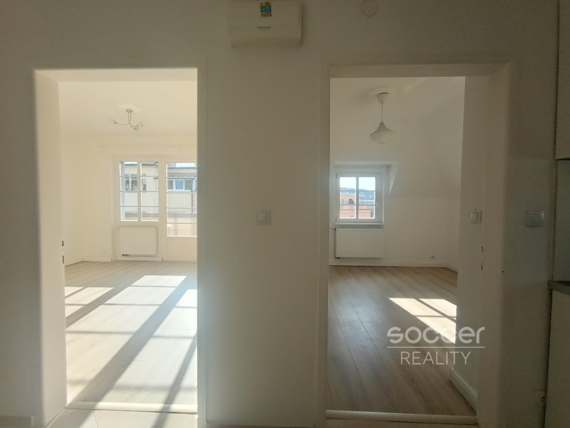 Pronájem krásného bytu 2+1/B, 50 m2, Praha 4 - Podolí, Pravá. Hledáte světlý byt s balkonem v širším centru Prahy? Máte rádi Podolí? Nově zrekonstruovaný byt se nachází ve třetím nadzemním podlaží cihlové vily s nádherným výhledem. Byt prošel kompletní rekonstrukcí, je nově zařízený kuchyňskou linkou. Nově zrekonstruovaná světlá koupelna s rovnou vanou, samostatné WC. V koupelně i na WC je okno. Balkon je přístupný z obývacího pokoje a má jižní orientaci. Dům leží v klidné ulici s vynikajícím dopravním spojením do centra Prahy tramvajemi, na metro B - Karlovo náměstí 5 minut. V okolí spousta zeleně, sportovišť, příjemné kavárny, restaurace, cukrárny. Byt je velmi tichý. Budete se zde cítit ihned jako doma. Bez domácích mazlíčků. K dispozici od 1.2.2026