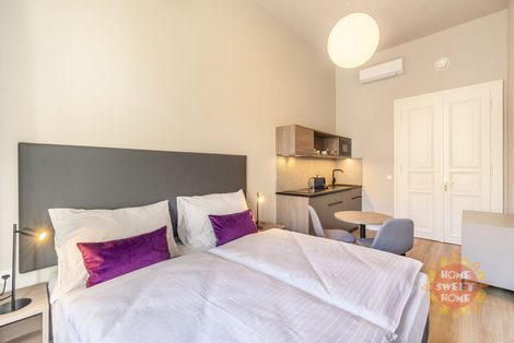 Moderní zařízený byt 1+kk po kompletní rekonstrukci o celkové výměře 24m2 se nachází ve čtvrtém patře cihlového domu s výtahem v nově zrekonstruovaném domě v ulici Krakovská, Nové Město. Bydlení se nachází ve velice vyhledávané lokalitě a to cca 100 metrů od Václavského náměstí. Byt sestává ze vstupní chodby s úložným prostorem (šatní skříň), jedné místnosti s manželskou postelí, plně vybavené kuchyňské linky a koupelny se sprchovým koutem a toaletou. Součástí domu je recepce 24/7. V ceně poplatků je zahrnuta energie, vysokorychlostní Wi-Fi, 68 televizních kanálů, svoz odpadu, úklid společných prostor, recepce. Byt je také vybaven klimatizační jednotkou. Možnost pravidelného úklidu a výměny ložního prádla za poplatek. Výborná lokalita v centru města Prahy. Dům je v pěší vzdálenosti na stanici metra "Muzeum" a "Můstek" nebo tramvajovou zastávku "Václavské náměstí", výborné napojení na Městský okruh. V samém srdci české metropole naleznete mnoho kulturního vyžití: Národní muzeum, Státní Opera, Kino Lucerna, menší divadla jako Studio Dva a Rokoko. Mimo jiné je zde mnoho kaváren, bister, restaurací, klubů, obchodů, služby, fitness a další. Možnost i krátkodobého pronájmu od 3 měsíců a déle. V domě se nachází více bytových jednotek k pronájmu. Pro bližší informace neváhejte kontaktovat makléře.
