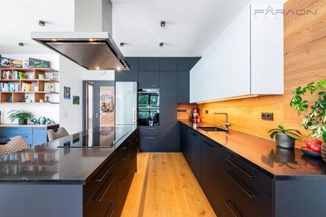 Moderní prémiový byt 3+kk na prodej o celkové ploše 137,9 m2, s prostornou jihozápadní terasou. V ceně je zahrnut sklep, dvě extra velká podzemní garážová stání i celé nadstandardní vybavení na míru, v hodnotě 3 mil Kč. Příjemně světlý byt se nachází ve 2. podlaží prestižní "Top' Rezidence Pomezí" v lokalitě Praha 5 - Košíře, zkolaudované v 6/2021, přímo u lesoparku Cibulka a Vidoule, s vynikající dostupností do centra města. Orientace nemovitosti do zeleně zaručuje maximální soukromí a velmi příjemnou zenovou atmosféru s úžasným pocitem klidu a harmonie. Moderní technologie, elegantní design a vysoké standardy bytu podtrhují jeho špičkovou kvalitu: - decentralizovaný systém větrání s rekuperací tepla a vlhkosti, s možností přichlazování - inteligentní řízení domácnosti - dřevěné podlahy s integrovaným fan-coilovým vytápěním - velkoformátová dřevěná okna s trojsklem, venkovní elektrické hliníkové žaluzie - podlahové vytápění v koupelnách - detektory požáru a zaplavení, osvětlení s pohybovými senzory - optický internet s datovými rozvody ve všech pokojích - prémiové zařizovací předměty a materiály v celém bytě - designové koupelny, kuchyň a ložnice na míru, značky Poggenpohl Vnitřní obytný prostor o rozloze 119,9 m2 zahrnuje vstupní chodbu, ložnici s en-suit koupelnou (sprchový kout + toaleta), druhou ložnici / pracovnu, otevřený koncept obývacího pokoje s jídelním místem a kuchyní, hlavní koupelnu (vana + sprchový kout), samostatnou toaletu a technickou místnost / komoru. K bytu náleží velká terasa (18 m2) s výsuvnou markýzou, přístupná z obývacího pokoje, ideální pro venkovní posezení a relaxaci. Velmi žádaná lokalita. Klidná, rodinná prémiová čtvrť s kompletní občanskou vybaveností: škola, školka, potraviny, restaurace, pošta, sportovní vyžití, rychlá dostupnost do nákupních center Nový Smíchov a Galerie Butovice. Těsná blízkost lesoparků a turistických stezek, včetně rozhledny Cibulka. Vynikající MHD spojení. Autobusová zastávka je hned za rohem. Nejbližší stanice metra Jinonice 15 minut chůze. 800 metrů od domu se nachází vlaková stanice s přímým spojením na Zličín nebo Smíchov. Autem se na Anděl dostanete za 10 minut. Shrnutí: podlahová plocha bytu 119,9 m2, terasa 18 m2, sklep 11 m2, dvě extra velká garážová stání. PENB-B ID nemovitosti MDO0620-0001. <a href="https://www.eurobydleni.cz/domy/rodinny-dum/benesov/obec-cakov/pronajem/"><strong>Pronájem rodinného domu Čakov</strong></a>