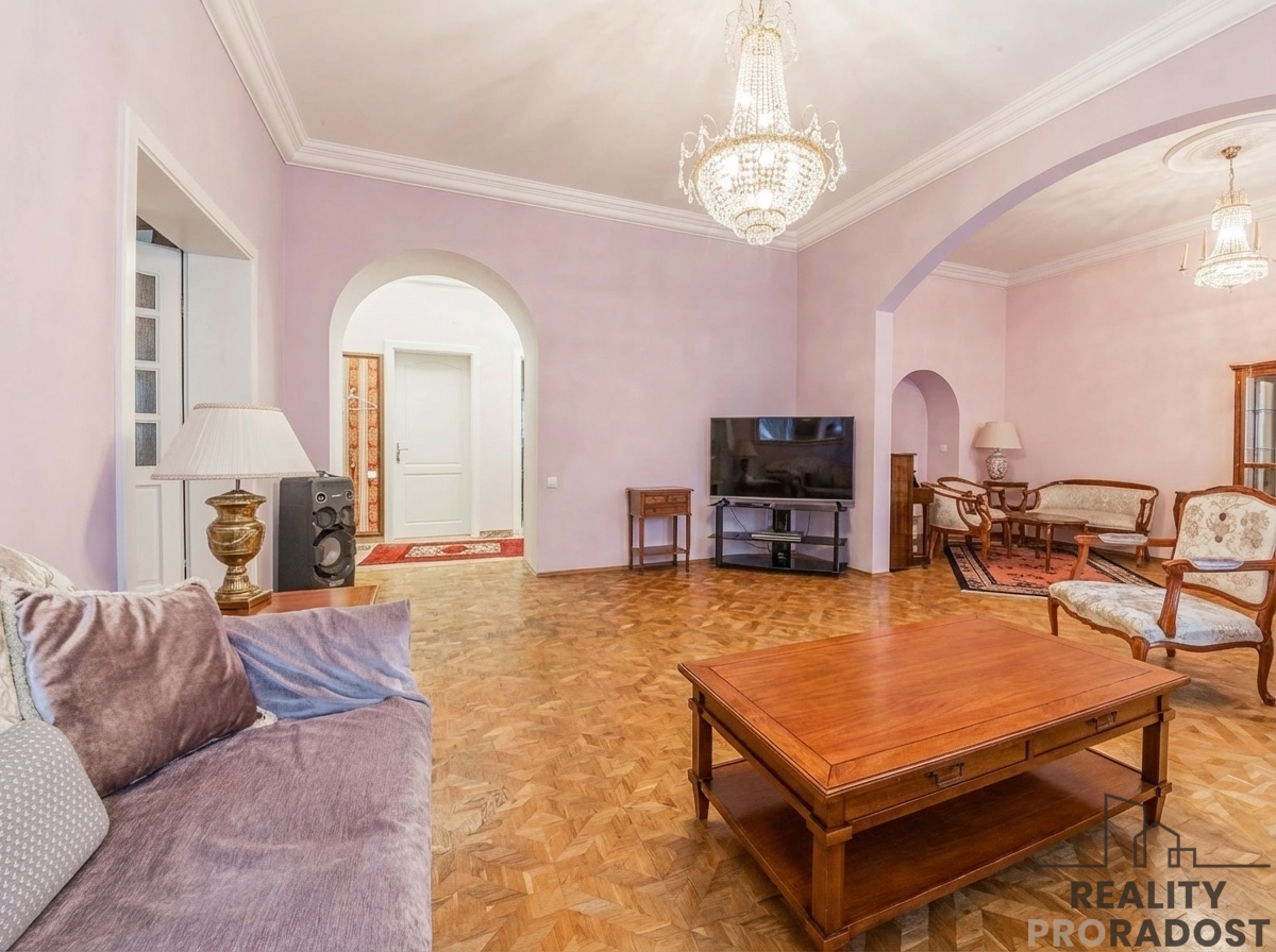 Koupě bytu na pražských Vinohradech patří mezi nejstabilnější rezidenční investice: tradiční čtvrť s aktivním společenským životem, špičkovými školami, kavárnami a restauracemi, perfektní dopravní dostupností do centra a množstvím zeleně v okolních parcích. Nabízíme prostorný byt 4+1 o užitné ploše 162,4 m2 ve 3. NP / 2. patře udržovaného historického cihlového domu ve Vinohradech, ul. Uruguayská. Jednotka zabírá celé patro a vznikla sloučením tří původních bytů, což zajišťuje mimořádné soukromí i flexibilitu pro další úpravy dispozic. Současné uspořádání: velký obývací prostor vzniklý propojením dvou místností + herna / hudební kout s klavírním křídlem, samostatná kuchyně s jídelnou, dále tří velké pokoje, dvě koupelny, samostatné WC, technická místnost a široké chodby. Celkové členění ploch: obytná část 108,4 m2, kuchyně + jídelna 17,6 m2, zázemí (koupelny, komunikace, technická část) 36,4 m2. Byt prošel při sloučení celkovou modernizací - nové měděné elektro rozvody, nové rozvody vody a kanalizace s měřením T/S, vytápění a TUV z vlastního plynového kotle se zásobníkem, rozvody do radiátorů, příprava na vysokorychlostní internet a kabelovou TV (optická síť). Stav hodnocen jako velmi dobrý; konstrukce bez zjevných poruch. Dům je reprezentativní vinohradská činžovní stavba z přelomu 19./20. století; vstupní vestibul navazuje na průjezd do zeleného vnitrobloku, schodiště po kompletní renovaci, přístup k výtahu z mezipodest. Lokalita: stabilizované obytné území v městské památkové zóně Vinohrady; v docházce metro A - Náměstí Míru, tramvaje i autobusy, bohatá občanská vybavenost, parky typu Riegrovy sady. Území napojeno na všechny městské sítě (voda, kanalizace, plyn, elektřina, data) a leží mimo záplavové území. Právní a technické jistoty: byt v osobním vlastnictví. Nemovitost se nachází v běžné městské zástavbě mimo zvláštní ochranná nebo bezpečnostní pásma; objekt není v záplavovém území ani v ochranném pásmu kulturní památky dle evidence NPÚ. Vybavení, materiály & atmosféra • Původní dřevěná špaletová okna (zachovalá; přirozené větrání, historický charakter). • Dubové parkety ve většině obytných místností; dlažby ve zázemí. • Vlastní plynový kotel - topení + TUV (kombinovaný). • Rozvody v mědi, měřená voda, radiátory. • Optické datové připojení možné. Úložné prostory K bytu náleží sklepní místnost cca 9 m2 Investiční potenciál Díky historickému sloučení tří bytů lze uvažovat o několika scénářích: zachování velkorysého rodinného bytu, rozčlenění na více apartmánů pro nájemní výnos, či částečná rekonstrukce s vyčleněním pracovny / ordinace (po projednání se stavebním úřadem). Základní podklady v pasportu k dispozici. Cena a financování 34 020 000 Kč (≈ 210 tis. Kč/m2 při 162 m2 užitné plochy; sklep 9 m2 nezapočten). Cena je konečná včetně provize a kompletního právního servisu. Hypoteční financování Vám zdarma pomůžeme zajistit - nezávazná konzultace.