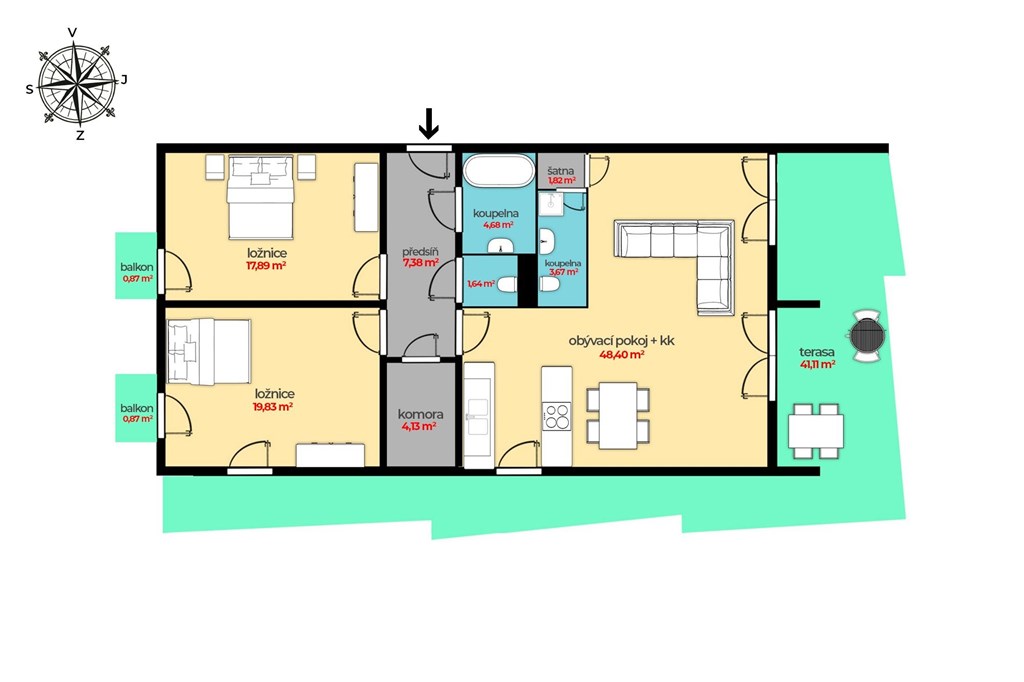 Krásný pasivní byt 3+kk s dvěma lodžiemi v Terra Barrandov, Praha 5