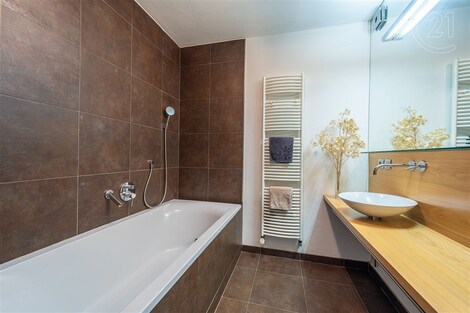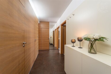 Exkluzivně nabízíme k prodeji IDEÁLNÍ BYT v Praze 8 Troji prostorný (109 m2 podlahové plochy) s dispozicí 3kk s možností zvětšení na 4kk (původní koncept) 41 m2 privátní terasa s orientací na jih, 2 balkóny (u každé z ložnic) orientace jih - obývací prostor, západ kuchyňský kout, západ/sever - ložnice, sever - 2. ložnice parkovací stání ve společné podzemní garáži 2 x koupelna (jedna s vanou druhá se sprchovým koutem) a 2 x WC (jednou samostatné) dostatek úložných prostor v bytě - komora (4 m2) a šatna (2 m2) sklep (4 m2) výhled do zeleně postaveno v roce 1999, rekonstrukce koupelny vč. dřevěného obkladu jádra v roce 2010 pečlivě udržovaný dům velmi klidná, tichá a žádaná lokalita Velká skála nacházející se v zóně zeleně na hraně nad údolím Vltavy. V docházkové vzdálenosti velké množství přístupných zelených ploch - severovýchodně Čimický háj, na jihozápadě přírodní památka Velká skála a přírodní památka Havránka, jižním směrem přírodní památka Trojská a v neposlední řadě i zoologická a botanická zahrada či Trojský zámek. Lokalita nabízí i široké možnosti sportovního vyžití - naučné stezky, cyklostezky, tenisová hřiště, Aquacentrum Šutka, fotbalový klub TJ Slovan Bohnice, BMX nebo softbalový klub Joudrs Praha a občanské vybavenosti (v místě obchod Žabka) a nedaleko pak kompletní síť obchodů a služeb (pošta, lékárna, pekárna, supermarket atd.) v OC Krakov. Zastávka BUS Čimický háj linek 102, 144,152, 177 a 200 v pěší vzdálenosti nabízí rychlé spojení na stanici metra C Kobylisy. Měsíční poplatky a zálohy za služby (bez elektřiny a internetu) činí v současné době 7.300 Kč.