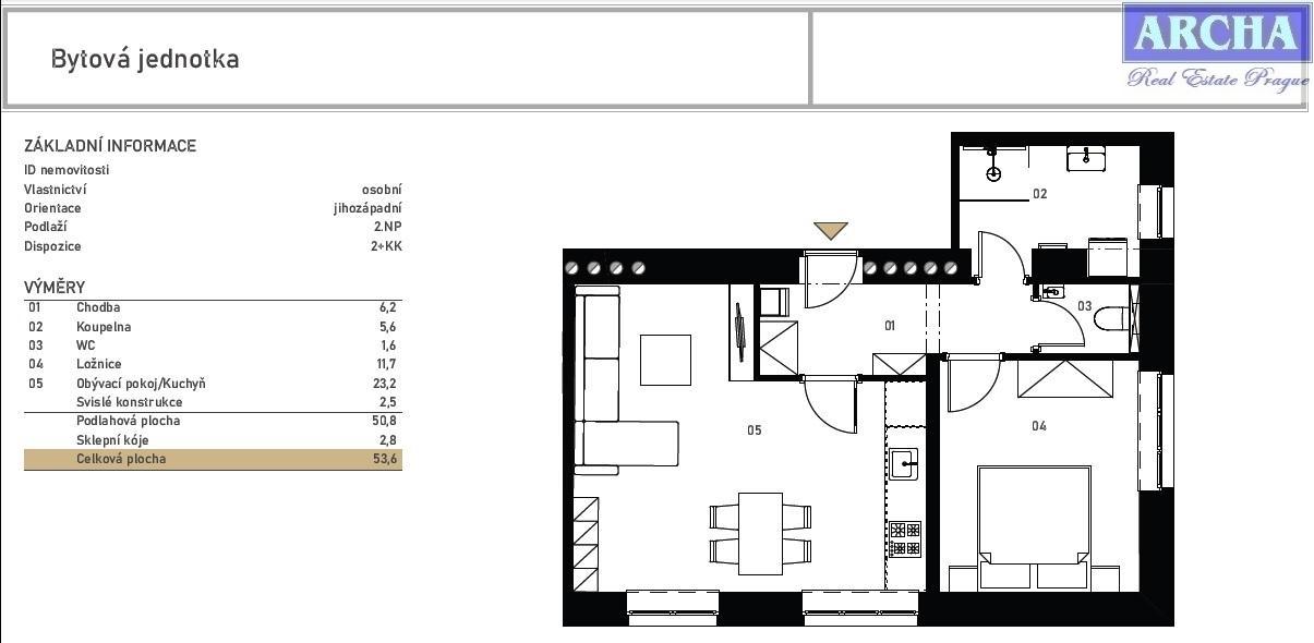 Nabízíme ke koupi bytovou jednotku o dispozici 2+kk a celkové podlahové ploše 53.6 m2 se nachází v 2. podlaží šestipodlažního bytového domu na Břevnově. K jednotce náleží sklepní kóje o výměře 2.8 m2. K dispozici sauna v domě, vybavené fitness, relaxační zahrada. Vlastnictví: osobní Dispozice: 2+kk Celková plocha 53,6 m2 Podlahová plocha 50,8 m2 Podlaží: 2 Sklepní kóje: 2,8 m2 Plastová okna: trojsklo Samostatné měření vodoměrem, elektroměrem Vchodové dveře bezpečnostní, hladké. Podlaha - dřevěná třívrstvá lamelová Ke koupi ihned. Dům má 6 nadzemních podlaží a 1 podzemní. Nachází se v něm 25 bytových a 2 nebytové jednotky, které čekají na nové majitele. Byty jsou připravené v provedení fit-out, tedy po kompletní rekonstrukci včetně moderní koupelny. Stačí si jen vybrat kuchyňskou linku podle svého vkusu. Ke všem bytům také náleží sklepní kóje. Okolí rezidence přímo vybízí k procházkám do přírody. Občas jsou ale dny, kdy každý ocení více soukromí. Pro takové chvíle je ideálním místem odpočinku nový vnitroblok s klidovou zónou a posezením. Společenská část s grilem zase láká k sousedským setkáním a pohodovým večerům na čerstvém vzduchu. Největším překvapením rezidence je privátní RELAXAČNÍ ZÓNA se SAUNOU a FITNESS, která je dostupná pouze pro obyvatele domu ! Provizi neplatíte. ARCHA realitní kancelář PRAHA Telefon: 737851059, 702072257, 608135458 Dat. schránka: vdc4dg E-mail: archa-rk@seznam.cz www.instagram.com/nemovitosti_archa www.facebook.com/nemovitosti.archa www.twitter.com/archa_life www.archa-rk.cz <a href="https://www.eurobydleni.cz/byty/2_kk/praha-zapad/obec-libcice-nad-vltavou/prodej/"><strong>Prodej bytu 2+kk Libčice nad Vltavou</strong></a>