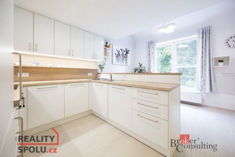 Moderní a tichý mezonetový byt 4kk v Hrdlořezích Vám nabídne vše, co potřebujete: stylové bydlení ve dvou nejvyšších patrech nového bytového domu, komfortní parkování na dvorku za domem, sklep a dvě krásné terasy s maximálním soukromím. Jedná se o promyšleně řešený byt s 2 ložnicemi, pracovnou a velkorysým obývacím pokojem s velkou kuchyňskou linkou. Součástí bytu jsou i dvě koupelny (na každém patře jedna). Výhodou bytu je i orientace do absolutní zeleně, díky které získáte každodenní pocit klidu a relaxace. Byt je i přes svojí polohu blízko komunikace nevídaně tichý. To je způsobeno dobrým konstrukčním řešením domu a kvalitou všech užitých stavebních prvků. Byt vám tím nabízí jedinečnou kombinaci tichého soukromí a výborné dopravní dostupnosti. Bytová jednotka je osazena rekuperací a klimatizací. Obojí zvyšuje už tak vysoký komfort bytu. Čistý vzduch a příjemné klima vám bude zvyšovat kvalitu bydlení ve všech ročních obdobích. Užitná plocha bytu je 93,3 m2. K bytu patří dvě terasy o výměrách 3,7 m2 a 6,7 m2 a sklep v podzemním podlaží. Na první patře bytu najdete prostorný obývací pokoj s kuchyňským koutem, koupelnou a dětským pokojem. Po schodech z obývacího pokoje se pak dostanete do horního patra, kde nejdříve uvidíte pracovnu. Po krátké galerii s dobře řešenými vestavěnými skříněmi se dostanete do ložnice a za ní pak do další koupelny se záchodem. V horním patře se také nachází i krásná terasa. Za zmínku jistě stojí i kvalitní vinilové podlahy, které jsou položeny v obou patrech. Nový majitel získá nejenom byt, ale i podstatnou část jeho vybavení: praktické vestavěné skříně, krásnou kuchyňskou linku a schody z masivu s příjemným LED osvětlením. Dům je nový (zkolaudovaný v roce 2018), komorní (pouze 8 bytů), má prostorný výtah, centrální plynový kotel a soukromé parkoviště na vnitřním dvorku za domem. Parkoviště je zabezpečeno automatickými vraty. Cena parkovacího stání stojí 600.000 CZK. Byt se nachází v lokalitě s výborným spojením do centra autobusová zastávka je pouhých 180 m od domu, za necelých 10 minut se dostanete na stanice metra Palmovka nebo Vysočanská a tramvajová zastávka Spojovací je vzdálena jen 10 minut chůze. V docházkové vzdálenosti najdete hned několik supermarketů Lidl, Kaufland i Albert. Milovníci přírody ocení blízkost přírodního parku Smetanka, který nabízí klidné procházky podél meandrů říčky Rokytky. Park je navíc napojen na oblíbenou cyklostezku, která vás zavede až do Troji ideální pro víkendové výlety na kole nebo pěšky. <a href="https://www.eurobydleni.cz/komercni-nemovitosti/obchodni-prostor/karlovy-vary/obec-karlovy-vary/prodej/"><strong>Prodej obchodních prostor Karlovy Vary</strong></a>