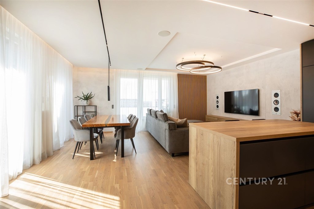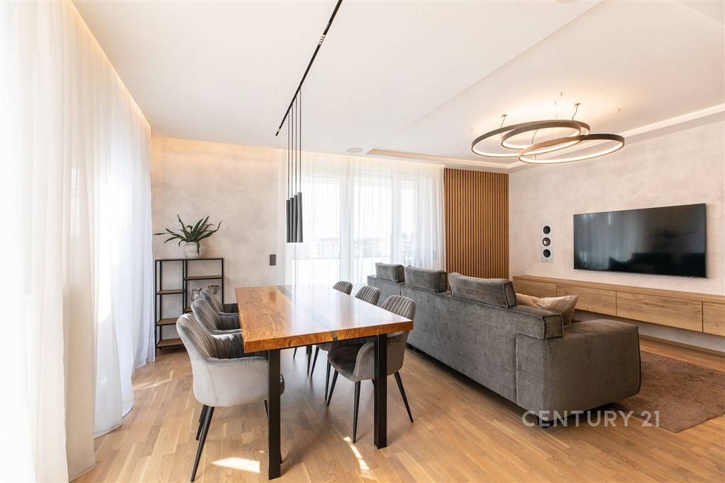 Exkluzivní bydlení : byt 5+kk s terasou a lodžií - Rezidence RANTA, Praha 5 - Hlubočepy Představte si domov, kde se snoubí špičkový design, nejmodernější technologie a klidné prostředí. Domov, který vám nabídne pocit luxusu každý den, ale zároveň úsporný provoz a dokonalý komfort. Přesně takový je tento jedinečný byt 5+kk o rozloze 140 m2 v prestižní rezidenci RANTA. Prostor, světlo a vzdušnost Srdcem bytu je velkorysý obývací pokoj, který vás okouzlí svou světlostí a propojením s moderní kuchyní i jídelním koutem. Díky přímému vstupu na terasu o velikosti 16 m2 a lodžii o celkových 30 m2, které obepínají velkou část bytu, získává interiér unikátní propojení s venkovním prostorem. Ať už si ráno vychutnáte kávu s výhledem nebo večer relaxujete s rodinou, vždy budete mít pocit, že příroda je součástí vašeho domova. Komfort pro celou rodinu Byt disponuje čtyřmi samostatnými ložnicemi, které zajistí dostatek soukromí všem členům domácnosti. Dvě elegantní koupelny - jedna s vanou, druhá se sprchovým koutem - doplněné o tři toalety, předsíň, chodbu a praktickou komoru podtrhují funkčnost celé dispozice. Design a technologie, které si zamilujete Každý detail tohoto bytu byl promyšlen s důrazem na pohodlí a kvalitu: kuchyňská linka s ostrůvkem a špičkovými spotřebiči vestavěné skříně nabízející dostatek úložného prostoru klimatizace v každém pokoji a předokenní žaluzie pro maximální komfort ambientní osvětlení vestavěná audio sestava pro dokonalou atmosféru v obýváku kvalitní poslech hudby zajišťuje navíc domácí kino audio též v koupelně a pracovně ( jednoduché ovládání ze Spotify) zabezpečovací systém Jablotron pro váš klid Praktické detaily, které potěší K bytu náleží dvě garážová stání (garážová vrata se ovládají přes mobilní telefon) a velký zděný sklep s regály, kde uložíte vše, co potřebujete. Terasa je navíc vybavena vodovodem - ideální pro péči o zeleň, grilování či letní osvěžení. Přístup do bytu je přes chodbu, na které se nacházejí pouze 2 bytové jednotky. Vstup je možný pouze přes čip, což zdokonaluje pocit soukromí. Lokalita, která má vše Rezidence RANTA se nachází v oblíbené lokalitě Prahy 5 - Hlubočepy. Jen pár kroků vás dělí od kouzelného Prokopského údolí, které je ideální pro sport, procházky i relaxaci v přírodě. Přitom máte doslova na dosah ruky kompletní občanskou vybavenost - školy, školky, obchody, restaurace, dětská hřiště, fitness centra i vodní areál AquaDream. Vzdálenost k MHD (autobus, tramvaj) je 300m. Do centra města i na letiště se dostanete během krátké doby. Domov, který si zamilujete Tento byt je víc než jen nemovitost - je to životní styl. Nabízí prostor, světlo, pohodlí a bezpečí, zároveň vám umožní každý den prožívat spojení s přírodou, aniž byste se vzdali výhod velkoměsta. Pokud hledáte skutečně výjimečné bydlení, kde se snoubí luxus, klid a moderní technologie, neváhejte nás kontaktovat a domluvte si osobní prohlídku. Tento byt si zamilujete na první pohled.