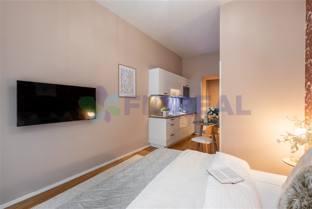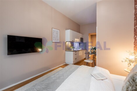 V exkluzivním zastoupení Vám zprostředkujeme prodej designového, zrekonstruovaného bytu o velikosti 1+kk, ploše 26,4m2, v druhém nadzemním podlaží cihlové domu s výtahem. Byt je situován v původní historické zástavbě se zachovanými secesními prvky a nezaměnitelným charakterem místa, kdy je nyní využíván ke krátkodobým pronájmům skrze platformu Airbnb (zhodnocení a konkrétní roční výnosnost na vyžádání u makléře). Konkrétně jde o luxusní rezidenční projekt Ferdinand Palace situovaný v samém srdci Prahy 1 Nového Města, jenž patří mezi unikátní historické objekty, jejichž počátky sahají až do 14. století. Fasádu zdobí busty králů Karla IV. a Jiřího z Poděbrad. Mezi největší přednosti bytu patří minimalistický a vkusný design na míru, dostatek úložných prostor a reprezentativní vstup do domu včetně společných prostor. Jedná se o velmi dobrou lokalitu v samotném centru města s výbornou dostupností díky nedaleké 6 min. vzdálené tramvajové zastávky a stanici metra B Karlovo náměstí nebo ve vzdálenosti do 12 min. metro A, B Můstek či A, C Muzeum. K volnočasovým aktivitám je k dispozici nespočet možností kulturního vyžití, okolních parků, zahrad, restaurací a služeb. V místě se nachází veškerá občanská vybavenost, popřípadě pro větší nákupy lze využít i nedaleké obchodní centrum Quadrio. Celkové měsíční poplatky činí 4.500, Kč, tj. (z toho 1.000, Kč elektřina a 3.500,Kč ostatní služby spojené s užíváním bytu). Volný ihned. Možnost financovat pomocí hypotečního úvěru. Více informací u makléře.