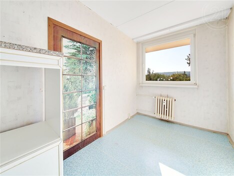 Nabízíme Vám dispozičně velmi pěkně řešený družstevní byt 4+1 v revitalizovaném panelovém domě na Zbraslavi Praha 5. Byt se nachází v posledním 3. patře (bez výtahu) a má obývací pokoj s lodžií a kuchyní orientován na jih, další tři pokoje jsou na sever, s krásným výhledem na Prahu. Byt je v původním stavu a určen ke kompletní rekonstrukci. Výhodou jsou dvě stoupačky a konstrukce z příček. Dispozici je tedy možné různě měnit, posouvat kuchyň i koupelny a měnit jejich počet. Samotný dům je velmi dobrém stavu, zateplený, s novými okny a střechou a aktuálně se plánuje oprava společných prostor a zvažuje se umístění fotovoltaiky na střechu domu. Po dokončení těchto úprav se uvažuje o převodu do osobního vlastnictví. Na koupi dokážeme zajistit financování úvěrem až do výše 6 mil. Kč bez nutnosti zástavy. V případně hypotečního úvěru je nutné zastavit jinou nemovitost. Na Zbraslavi je veškerá občanská vybavenost a spojení do centra města trvá autobusem cca 15 minut na Smíchovské nádraží (metro B). Více informací u makléře.