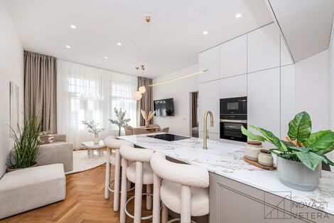 Přímý majitel nabízí k prodeji prostorný a světlý byt 3+kk po kompletní rekonstrukci, s výtahem, o celkové rozloze 93 m, situovaný v 5. nadzemním podlaží zrekonstruované secesní rezidence ve vyhledávané části Prahy 10 Vršovice, v ulici Norská. Součástí bytu je také slunná terasa o rozloze 6,5 m s krásným výhledem na Prahu a okolní vilovou zástavbu. Lokalita patří mezi nejvyhledávanější části širšího centra Prahy a vyniká skvělou občanskou vybaveností. V okolí najdete množství oblíbených kaváren, restaurací, obchodů, škol a školek. Nedaleko se nacházejí Heroldovy sady nebo Havlíčkovy sady (Grébovka), ideální pro odpočinek a volnočasové aktivity. Výhodou je také skvělé spojení MHD v pěší vzdálenosti jsou tramvajové a autobusové zastávky, které zajišťují rychlé spojení s centrem i dalšími částmi Prahy. Jedná se o kompletně zrekonstruovaný byt ve vysokém standardu, který je součástí projektu Rezidence Norská. Dům z počátku 20. století spolu se společnými prostory prošel v letošním roce citlivou rekonstrukcí s důrazem na detail a zachování historické autenticity, aby byty poskytovaly komfort a splňovaly požadavky moderního městského bydlení. Byt je orientován na jih a západ, což zajišťuje dostatek denního světla a příjemnou atmosféru po celý den. Dominantním prostorem celého bytu je prostorný obývací pokoj se vstupem na terasu a kuchyňským koutem na míru, osazeným kvalitními spotřebiči MIELE, s pracovní deskou z přírodního kamene a důmyslným úložným systémem. Dvě samostatné ložnice jsou vybaveny designovým vestavěným nábytkem na míru, který maximálně využívá prostor. Hlavní ložnice s výhledem na panorama města nabízí místo pro odpočinek, které podtrhuje charakter celé nemovitosti. Koupelna je navržena v moderním, nadčasovém stylu a nabízí jak komfortní vanu, tak sprchový kout. K dispozici je také samostatná toaleta. Součástí bytu je sklep o ploše 2,23 m, který poskytuje praktické úložné zázemí. Vytápění bytu je zajištěno centrálním dálkovým systémem. Kompletní měsíční poplatky do SVJ, včetně příspěvku do fondu oprav, činí 5.568 Kč. Byt představuje ideální příležitost pro ty, kteří hledají vlastní bydlení ve Vršovicích, stejně jako pro ty, kteří ocení stabilní lokalitu a silný investiční potenciál. Byt je prodáván přímo majitelem, tudíž kupující neplatí žádnou provizi za zprostředkování. Uvedená cena je konečná a zahrnuje i kompletní právní servis, což zajišťuje snadný a bezstarostný proces koupě. Pro více informací nebo sjednání prohlídky nás neváhejte kontaktovat.