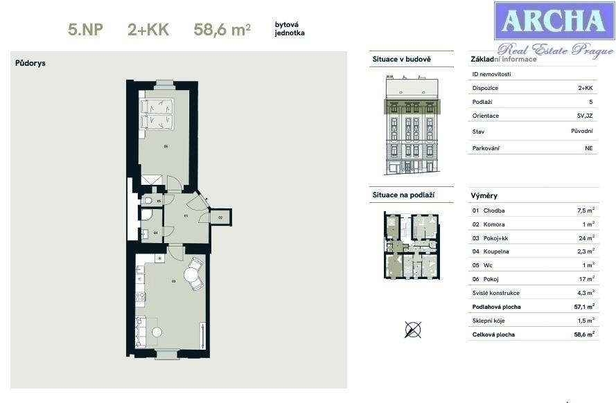 Nabízíme k prodeji bytovou jednotku o dispozici 2+kk, podlahové ploše 57,1 m2 a celkové ploše 58,6 m2. Byt je součástí bytového domu v klidné části Prahy 4 Nuslí, na pomezí Vršovic, v docházkové vzdálenosti od Náměstí Bratří Synků a s výborným spojením do centra Prahy 1. Dispozice bytu v 5. nadzemním podlaží nabídne obývací pokoj s přípravou na kuchyň, ložnici, samostatný pokoj, koupelnu, samostatnéWC, komoru a předsíň. K jednotce patří i sklepní kóje. Dům prochází kompletní obnovou společných prostor.Součástí revitalizace je opravená historická fasáda, nová vstupní hala s bezpečnostními dveřmi, renovované schodiště s původním zábradlím, nové elektroinstalace ve společných prostorách i technické zázemí. Vznikne také kolárna, sklepní prostory a odpočinková zóna ve vnitrobloku. Byt se prodává v původním stavu. Nový majitel tak získá možnost navrhnout si interiér zcela podle vlastního vkusu a potřeb. podlaží 5 stav Shell&Core celková plocha 58,6 m podlahová plocha 57,1 m orientace JZ, SV sklepní kóje 1,5 m vlastnictví osobní Koupit bytovou jednotku lze ihned. K předání jednotky dojde v 1Q 2026. Dům se nachází v lokalitě s veškerou občanskou vybaveností v okolí jsou kavárny, pekárny, restaurace i obchody, v blízkosti také parky Jezerka, Folimanka nebo Havlíčkovy sady. Tramvajová zastávka je vzdálena jen pár kroků. Zastávky Metra C (Pankrác) nebo B (Karlovo náměstí) jsou dostupné během několika minut jízdy autem. V budoucnu lokalitu obslouží i připravovaná trasa Metra D. K dispozici je i dvůr ve vnitrobloku, připravený na vaši budoucnost. Pohodlí zajistí prostorná kolárna a sklepní kóje Troax s dostatkem úložného prostoru. Nové vchodové dveře s čipovým otevíráním a bezpečnostní bytové dveře třídy 3 přinesou klid a jistotu. Byty budou s novými elektrickými rozvody a vodoměry budou připravené pro nový začátek. Lokalita Nuslí patří mezi atraktivní investiční lokality Provizi neplatíte ARCHA realitní kancelář PRAHA Telefon: 737851059, 702072257, 608135458 Dat. schránka: vdc4dg E-mail: archa-rk@seznam.cz www.instagram.com/nemovitosti_archa www.facebook.com/nemovitosti.archa www.twitter.com/archa_life www.archa-rk.cz <a href="https://www.eurobydleni.cz/byty/2_1/olomouc/obec-unicov/pronajem/"><strong>Pronájem bytu 2+1 Uničov</strong></a>