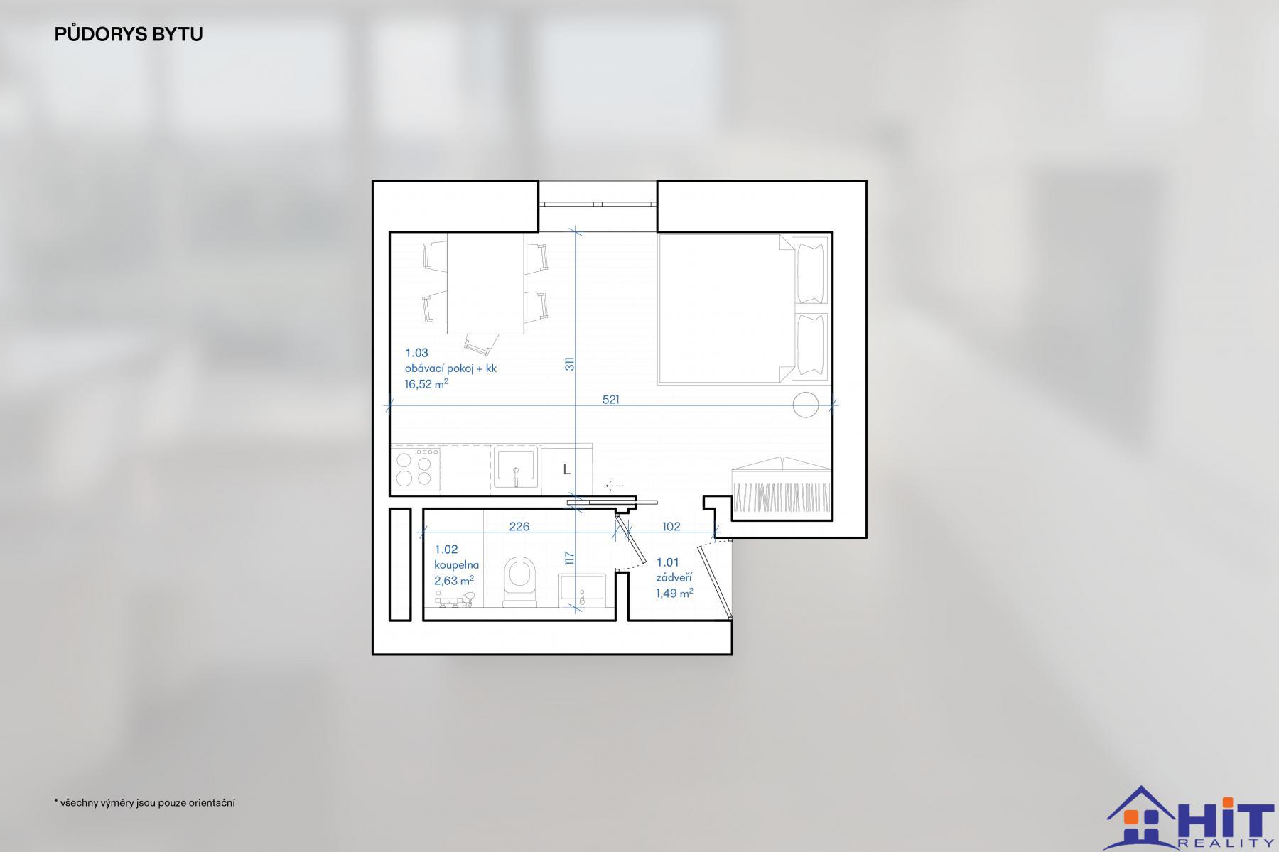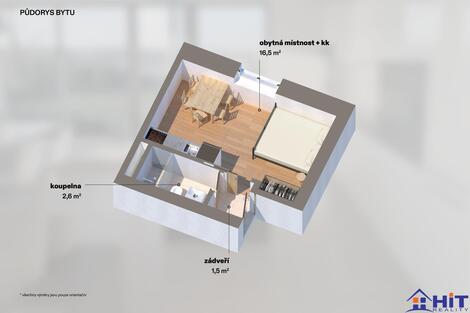 Prodej bytu 1+kk o velikosti 29,3 m2 s terasou - Praha 9 - Satalice