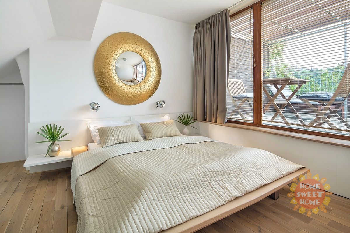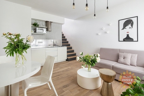 Moderní mezonetový byt 2+kk k pronájmu o celkové rozloze 55m2 s terasou se nachází v 5. patře domu z 19. století bez výtahu v ulici Holečkova, Praha 5 - Košíře. Byt je vybaven kvalitním designovým nábytkem, vysokorychlostním internetem WIFI, satelitem, DVD, trezorem. Kuchyně vybavena vestavěnými spotřebiči. V domě je možnost využívat prádelnu /v bytě není přímo pračka/. Moderní bydlení v klidné lokalitě avšak do historického centra města se dostanete během 15 minut. V přízemí je plně vybavená kuchyňská linka vč. myčky, koupelna se sprchovým koutem, šatna a obytný prostor, v patře ložnice s vchodem na terasu. V bytě je mimo jiné klimatizace. Byt se nachází v blízkosti tramvajové zastávky U Zvonu, pouhých 5 minut od metra Anděl. Bydlení se nachází v těsné blízkosti parku Klamovka a nebo 4 bus. zastávky od velmi oblíbeného parku Ladronka. Vynikající dostupnost do všech částí města. Stanice tramvaje je umístěna jen cca 2 min od domu a za dalších pár minut se dostanete na stanici metra Anděl. Nachází se zde nákupní centrum Nový Smíchov - obchody, kina, restaurace. V ceně je zahrnutý týdenní úklid včetně výměny ložního prádla. Možnost pronájmu parkovacího stání za měsíční poplatek 4 000 Kč, dle aktuální dostupnosti. Byt je dostupný k pronájmu od 1.prosince. Neplatíte provizi RK. Možnost i krátkodobého pronájmu.