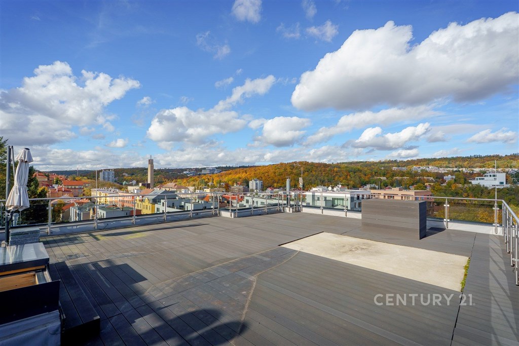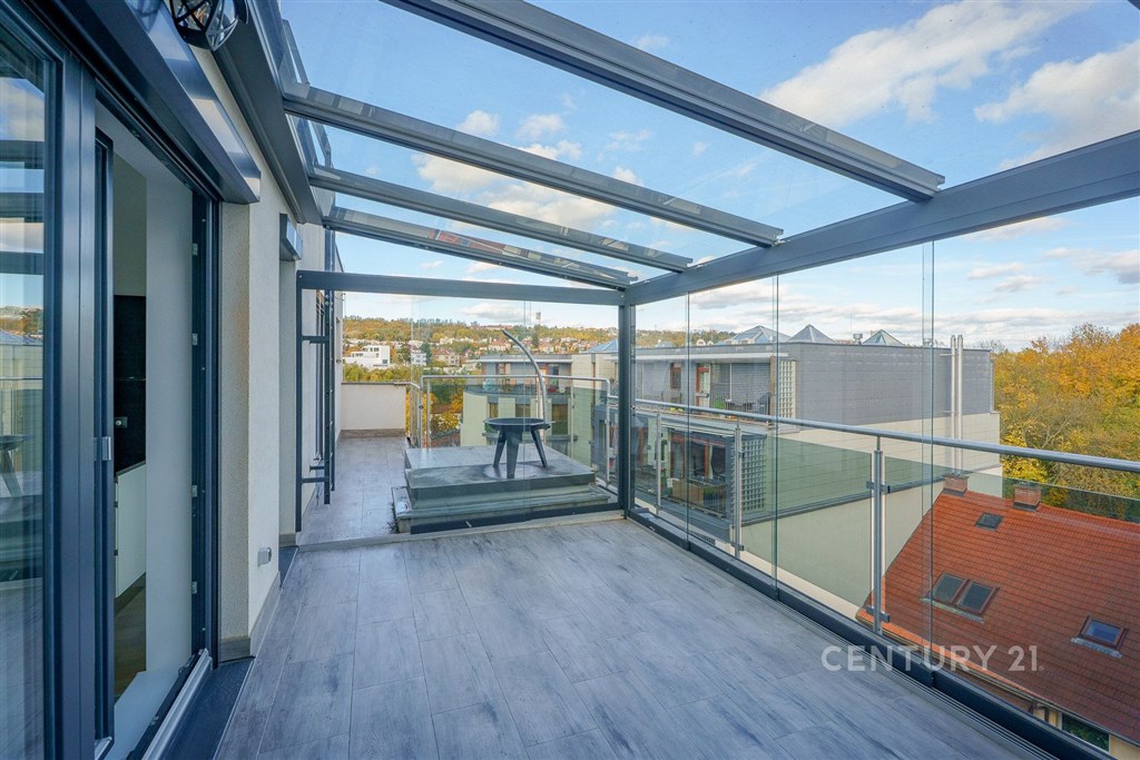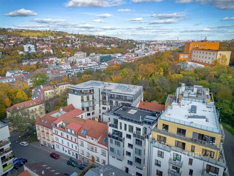 Nabízíme na prodej opravdu jedinečný byt v komorní novostavbě v ulici Tůmova v Košířích. Jedná se o mezonet o dispozici 4+kk, který se nachází v posledních dvou patrech novostavby o 10 bytových jednotkách. V 1. patře bytu najdeme předsíň, ložnici s koupelnou a technickou místnost, ve 2. patře se pak nachází obývací pokoj propojený s kuchyní, hlavní ložnice s koupelnou a 3. ložnice s koupelnou. Dále je zde prádelna s WC. Z ložnic a kuchyně se dostaneme buď na terasu nebo do zimní zahrady. Největším bonusem je střešní terasa přístupná přímo z bytu. Po schodech z obývacího pokoje se dostaneme na terasu z které máme 360stupňový výhled na celé Košíře. Součástí prodeje bytu jsou i 2 velkorysá parkovací stání v přízemí domu. Byt je vybaven dřevěnými okny s trojskly, předokenními elektrickými žaluziemi, klimatizací, kuchyňskou linkou a ostrůvkem s žulovou deskou. Nenechte si uniknout tuto jedinečnou nabídku a domluvte si prohlídku s makléřkou.