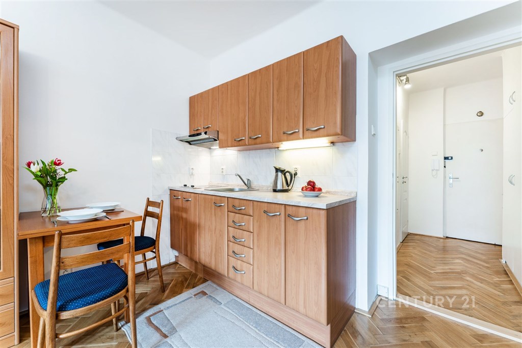 Hledáte příjemné bydlení v blízkosti přírody a sportovního vyžití? Nabízíme vám útulný a světlý byt 1+kk, který se nachází ve druhém patře cihlového domu bez výtahu, pouhých pár kroků od cyklostezky podél Vltavy a plaveckého bazénu v Podolí. Byt prošel rekonstrukcí a nabízí moderní vybavení: dřevěné podlahy, plně vybavenou kuchyňskou linku (elektrický dvojvařič, přenosná trouba, mikrovlnka, malá lednice, varná konvice a základní nádobí) a koupelnu s vanou a pračkou. WC je samostatné. Praktické vestavěné skříně a další úložné prostory ve vstupní chodbě i pokoji vám zajistí dostatek místa pro všechny vaše věci. Zařízení bytu zahrnuje rozkládací gauč, pracovní a jídelní stůl a několik skříněk. Prostorný pokoj s plastovými okny je orientován na jihozápad a nabízí výhled do klidného vnitrobloku. Dům je napojen na dálkové ústřední vytápění, náklady na služby činí 2 250 Kč/měsíc. Elektřina bude převedena na nájemníka. Požadovaná vratná kauce je ve výši 26 000 Kč. Byt je ideální pro jednu osobu, která ocení skvělou dostupnost města, klidnou lokalitu a příjemné prostředí k životu. Neváhejte mě kontaktovat pro více informací nebo sjednání prohlídky.