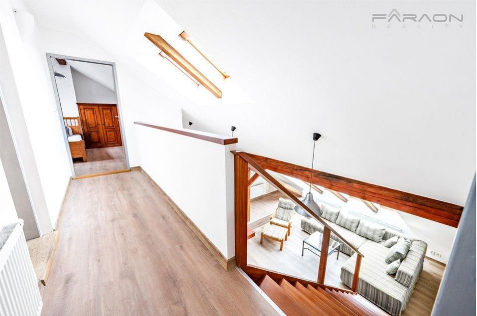 Prostorný, tichý mezonetový byt 3+kk, o ploše 132 m2, s terasou 12 m2, situovaný v posledních dvou podlažích činžovního domu s menším výtahem, na pražském Žižkově. Místo se skvělou dostupností do centra města a v blízkosti hned 3 velkých parků. Ve spodním patře bytu se nachází vstupní hala, otevřený koncept kuchyně s obývacím prostorem a jídelní částí, dále pracovní kout a vstup na východně orientovanou terasu. V horním patře bytu jsou 2 ložnice, koupelna s wc, vanou, sprchou a pračkou. Byt se pronajímá zařízený, viz. foto. Kuchyně je vybavena nádobím a všemi spotřebiči - myčka, sklokeramická deska, trouba, digestoř, lednice. V ložnici je manželská postel, druhý pokoj může sloužit jako ložnice, šatna či pracovna. V bytě je dostatek úložných prostor. Nábytek vyrobený na zakázku, z masivu exotického dřeva, vhodně dotváří atmosféru přiznaných tesaných trámů v interiéru, s dřevěným schodištěm. Skvělá lokalita v blízkosti centra i přírody, jen pár kroků od tramvajové zastávky "Lipanská" a stanic metra "Jiřího z Poděbrad" a "Flora". Parkování v modré zóně u domu. V okolí se nachází mnoho vyhlášených restaurací a kaváren, Žižkovský vysílač, supermarket Albert nebo parky Parukářka, Vítkov a Riegrovy sady. V prostorách domu i bytu platí zákaz kouření. Určeno výhradně pro zájemce o dlouhodobý pronájem, bez domácích mazlíčků! Kauce 50.000 Kč. Provize RK ve výši 1 nájmu + DPH. K dispozici ihned. ID nemovitosti MDO0602-0001. <a href="https://www.eurobydleni.cz/byty/2_kk/praha-7/obec-holesovice/pronajem/"><strong>Pronájem bytu 2+kk Praha 7, Holešovice</strong></a>