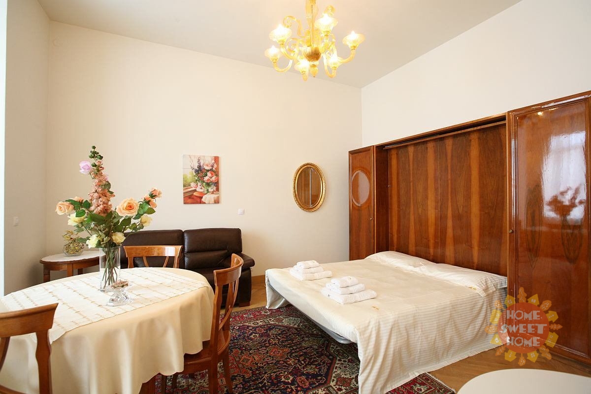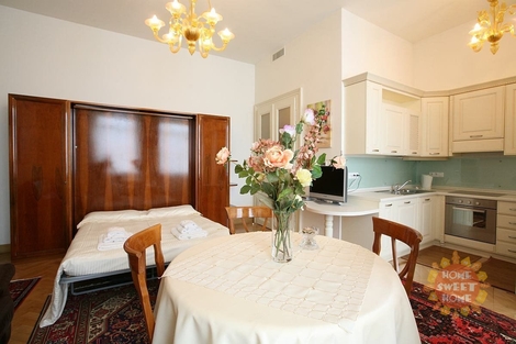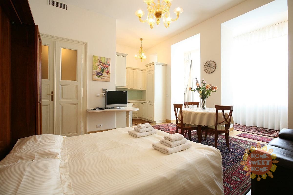Praha, luxusní klimatizovaný byt 1 +kk k pronájmu se nachází v prestižní zóně pražských Vinohrad, jen 50m od nádherného parku s kostelem sv. Ludmily. Byt se nachází ve 3.patře cihlového domu s výtahem. Byt uspokojí nejnáročnější z náročných. Je zařízen dle všech Vašich potřeb (např. porcelánové nádobí, křišťálové skleničky. kompletní vybavení kuchyně - hrnce, příbory, ubrusy). Koupelna s rohovou vanou, toaletou. K dispozici je také pračka. Najdete zde perské koberce, LCD TV, internet, pevné telefonní linky, dveřní videotelefon,atd. K dispozici je vyhřívaný bazén s vodní masáží a garážové stání. Výborné spojení s centrem - metro trasa A, autobusová zastávka přímo před domem. Václavské náměstí je pouhých 5 minut chůze. Video bytu je z totožného bytu, pouze tento byt nedisponuje terasou do vnitrobloku. Byt je dostupný k pronájmu od ledna 2026.