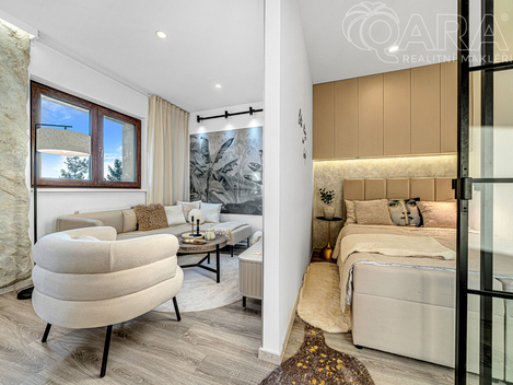 Nabízím k prodeji výjimečný byt 1+kk o podlahové ploše 36,53 m2 po kompletní, luxusní rekonstrukci. Každý detail zde byl promyšlen tak, aby spojoval estetiku, funkčnost a příjemnou atmosféru domova. Byt se nachází ve 2. patře cihlového domu v klidné části Prahy, obklopené zelení a rodinnými domy. Žádný panelák, žádný ruch, jen klid a soukromí. Na dosah máte i Klánovický les, ideální místo pro běh, cyklistiku nebo víkendový piknik. Interiér působí jako z designového magazínu. Kuchyňská linka na míru nabízí dostatek prostoru a je vybavena špičkovými spotřebiči. Dominantou obývací části je originální umělecký prvek, a to dekorativní plastika skály, která dodává bytu osobitý charakter a světový styl. V koupelně najdete moderní vanu, elegantní kombinaci dlaždic a světla, která působí mimořádně útulně. Vše v jednotném designu a bez kompromisů v kvalitě. Každý večer tady můžete sledovat západ slunce, které zaplaví prostor teplým světlem, a s ním přichází ten pravý pocit domova. Díky nízkým měsíčním nákladům 1 675 Kč je bydlení nejen krásné, ale i úsporné. K bytu patří společná zahrada o výměře 634 m2, kde si můžete vytvořit svůj vlastní kout pro odpočinek, grilování nebo posezení s přáteli. Parkování je bezproblémové přímo u domu. Už máte zarezervovaný termín prohlídky? Těším se na Vás.