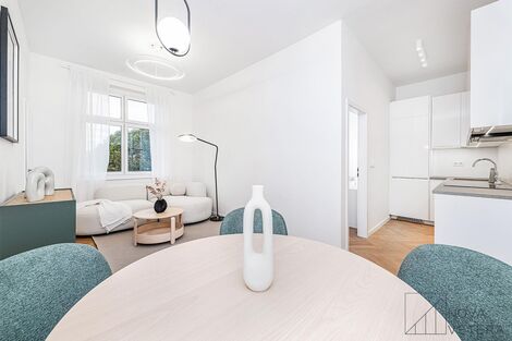Přímý majitel nabízí k prodeji prostorný a světlý byt 2+kk o celkové ploše 49 m, umístěný ve 3. nadzemním podlaží zrekonstruovaného cihlového domu s výtahem. Dům se nachází v atraktivní lokalitě na pomezí rezidenčních Vinohrad a historického Žižkova, v ulici Přemyslovská. Byt je vhodný pro jednotlivce, pár i jako investice určená k dlouhodobému či střednědobému pronájmu. Okolí nabízí bohatou občanskou vybavenost a unikátní atmosféru městského života - v těsné blízkosti se nachází množství kaváren, bister, pekáren a restaurací, stejně jako Riegrovy sady. V docházkové vzdálenosti jsou obchody, zdravotnická zařízení, služby i mateřská a základní škola. Výbornou dopravní dostupnost zajišťuje stanice metra A Jiřího z Poděbrad a několik tramvajových a autobusových linek. Byt právě prochází kompletní rekonstrukcí, která zahrnuje nové rozvody elektřiny, vody a odpadů, moderní podlahové krytiny, nová okna, obklady a sanitu. Součástí je také kuchyňská linka vybavená spotřebiči prémiové značky Bosch. Po dokončení rekonstrukce bude byt připraven k nastěhování bez nutnosti dalších investic. Dispozice bytu nabízí prostorný obývací pokoj s kuchyňským koutem, samostatnou ložnici a koupelnu se sprchovým koutem a toaletou. Vstupní chodba poskytuje dostatek místa pro úložné řešení. K bytu náleží také nová prostorná sklepní kóje o velikosti 6 m. Byt je orientovaný na sevrozápad. Vytápění bytu zajišťuje nové elektrické podlahové topení fungující na bázi uhlíkových folií s WiFi termostaty a možností ovládat teplotou na dálku přes mobilní telefon. Kompletní měsíční poplatky do SVJ vč. fondu oprav činí 2.189 ,- Kč. Byt prodává přímý majitel a neplatíte žádnou provizi za zprostředkování. Uvedená cena je konečná a zahrnuje i kompletní právní servis, což zajišťuje snadný a bezstarostný proces koupě nemovitosti. Fotografie jsou ilustrační a pocházejí z jiného dokončeného projektu, odpovídají však standardu a stylu prováděné rekonstrukce. V případě zájmu o více informací nebo domluvu osobní prohlídky nás neváhejte kontaktovat. <a href="https://www.eurobydleni.cz/byty/2_kk/praha-9/obec-letnany/pronajem/"><strong>Pronájem bytu 2+kk Praha 9, Letňany</strong></a>