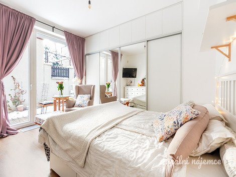 Útulné bydlení v bytě 2+kk s terasou (49m2) a vlastním parkovacím stáním ve dvoře. Byt se nachází ve výjimečné lokalitě na pomezí Vršovic a Vinohrad - hned vedle parku Grébovka. Byt je k dispozici od 1.3.2026. Případně po domluvě i dříve. Interiér bytu tvoří obývací pokoj s vybaveným propojený s kuchyňským koutem a terasou, ložnice, která je taktéž propojena s terasou, koupelna se sprchovým koutem, komora a předsíň. Vinylové podlahy vyššího standardu. Topení a ohřev vody bytových jednotek domu zajišťuje společná výměníková stanice umístěná v suterénu domu. Veškerá občanská vybavenost je v místě s perfektní dopravní dostupností. Všechny zastávky tramvají jsou vzdálené do 5 min. chůze od domu (Vršovické náměstí, Krymská, Nádraží Vršovice). Vlakové nádraží, které krásně spojuje s Hlavním nádražím, je vzdálené cca 7 min. chůze. Okolí nabízí plno zeleně, sportovního a také kulturního vyžití. V bezprostřední blízkosti je známý park Grébovka. Byt je k pronájmu plně zařízený s nemalou investicí, s vestavěnou kuchyňskou linkou, parní troubou, šatními skříněmi, postelí a v neposlední řadě krásnou dřevěnou terasou. Obrovská výhoda je možnost parkování přímo na pozemku vedle terasy, tudíž odpadá nutnost parkování v ulici na zónách. Zálohové platby už obsahují zálohy na elektřinu a pojištění bytu.