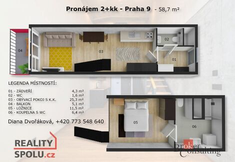 Pronájem bytu 2+kk Praha 9, Vysočany na Eurobydleni.cz