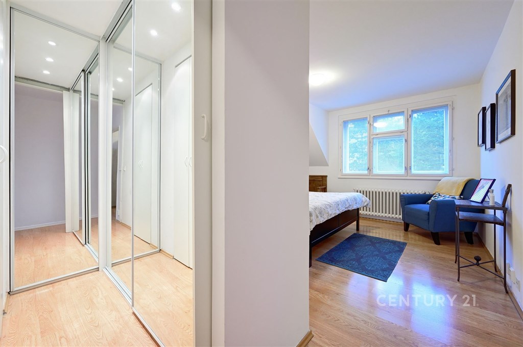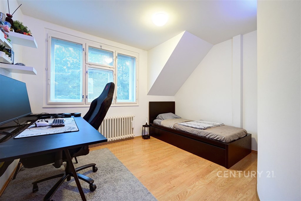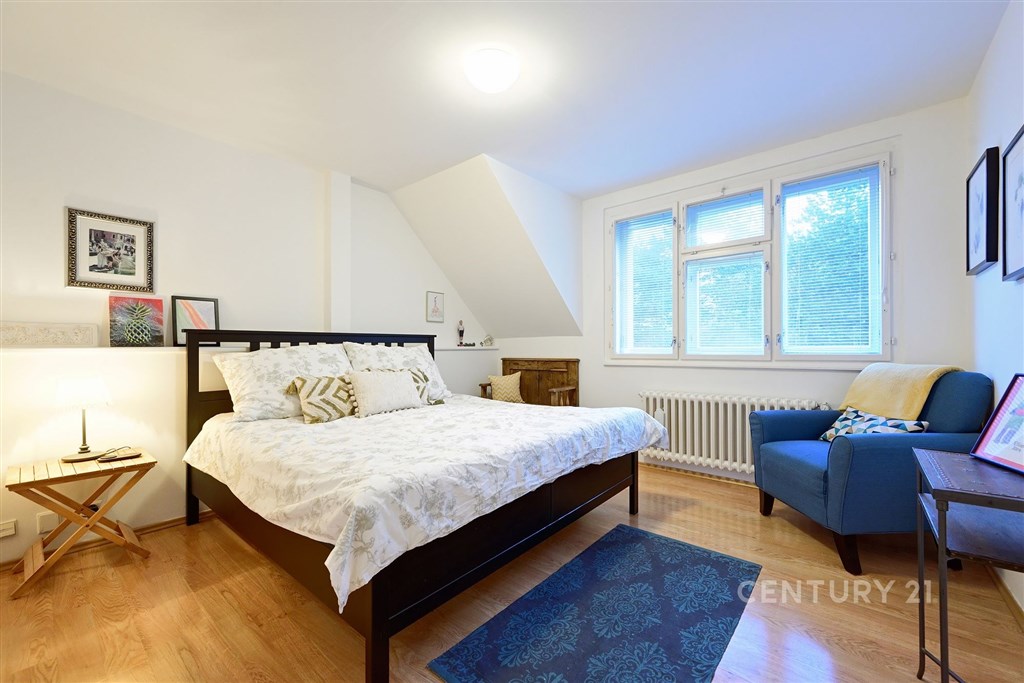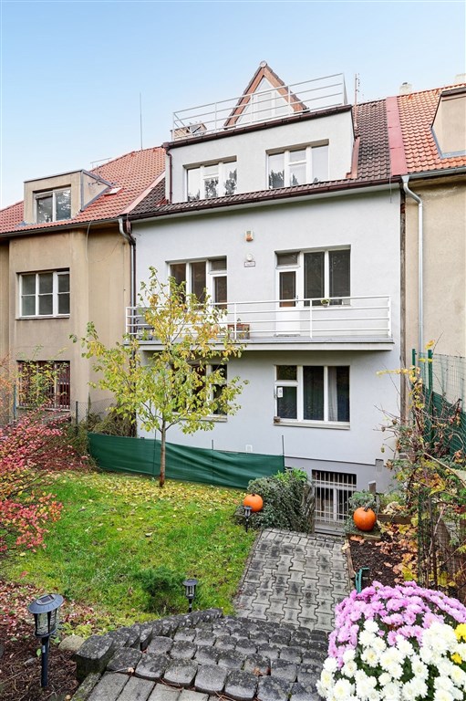 Prostorný mezonetový byt o třech podlažích (2. - 4.NP) s balkonem a terasou, vzniklý spojením dvou původně samostatných bytových jednotek a půdních prostor v bytovém domě. Celková obytná plocha je 171 m2. K bytu patří garáž a sklad v úrovni ulice. Spolu s menší bytovou jednotkou v domě je ve společném užívání zahrada. V 2. nadzemním podlaží se nachází vstupní chodba s vestavěnými skříněmi, ze kterých je vstup do koupelny se sprchou a WC, do kuchyně se spíží a obývacího pokoje s jídelnou. Obývací pokoj má velký balkon orientovaný do zahrady. Do 3. nadzemního podlaží se jde po dřevěném schodišti. Z chodby je přístup do 3 samostatných pokojů, jeden z nich má vlastní šatnu. Dále do prostorné koupelny s rohovou vanou a WC. Naproti schodišti je důmyslná knihovna s točitým schodištěm, které vede do podkroví. V podkroví je jedna prostorná místnost s kuchyní, která má vlastní terasu orientovanou do zahrady (na jih) a technická místnost s kotlem. Byt a společné prostory v domě prošly zásadní rekonstrukcí v roce 1998 včetně zateplení celého domu, v roce 2008 byla provedena sanace zemní vlhkosti v 1.PP, v roce 2011 pak byla provedena nová fasáda a položena nová dlažba na balkoně a terase. Ústřední vytápění zajišťuje samostatný plynový turbokotel Junkers, zásobník TUV byl vyměněn v roce 2016. Okna jsou dřevěná špaletová, kvalitě provedené repliky včetně kování dle původního provedení. Interiérové dveře částečně repasované, částečně repliky dle původního provedení. Byt je ve velmi dobrém stavu, vykazuje však opotřebení odpovídající době užívání. Atraktivní lokalita v Praze 6 mezi ulicemi Střešovická a Na Petřinách, výborně dostupná MHD (stanice tramvaje pěšky 5 minut, metro Bořislavka 10 minut, do centra 30 minut). Výhled do zeleně, hlavní komunikace je odcloněna vzrostlými stromy. Chládkovo zahradnictví (s dobrou restaurací) jen 200 m, další restaurace v okolí na Ořechovce a ve Střešovicích. Skvělé školy, školky, nedaleko koupaliště Petynka, obchody i služby.