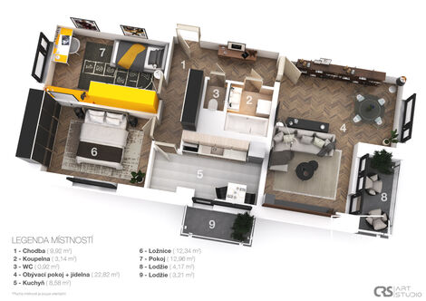 Nabízíme k pronájmu exkluzivní byt v osobním vlastnictví o dispozici 3 + 1, s celkovou plochou 77 m2, nacházející se ve 3. patře šestipodlažního…
