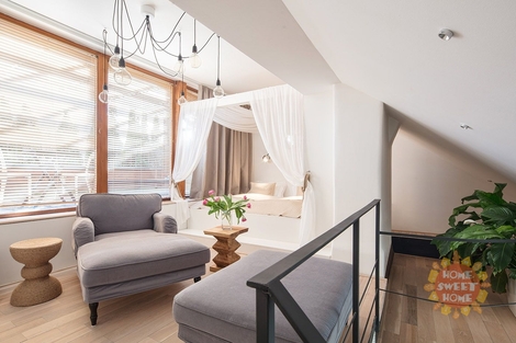 Luxusně zařízený byt 1+1 o celkové výměře 38 m2, plně zařízený duplex s terasou v 5.patře sescesni bez výtahu v ulici Holečkova. Bez provize RK. Byt sestává ze dvou pater: v horním patře je ložnice s king size bed s nebesy a obývacím prostorem se sofa, v dolním patře je zařízen kuchyňskou a jídelní částí vybavenou kuchyňskou linkou, jídelní kout se stolem a židlemi, TV/SAT, WIFI, koupelna a WC, v předsíni je šatní skříň, v apartmánu je klimatizace. V domě jsou možné excelentní služby. Možnost připojení k vysokorychlostního internetu, který zajišťuje plnohodnotnou práci z domova (již zahrnuto v ceně). Jednou týdně průběžné úklidy bytů s výměnou povlečení a ručníků, pohotovostní služba 24/7, recepce denně 9-16hod, možnost využití zrekonstruovaného lobby, které poskytuje příjemné posezení. Byt se nachází v těsné blízkosti tram zastávky U Zvonu, 5 min na metro Anděl. Dostupné k pronájmu od 5.ledna 2026.