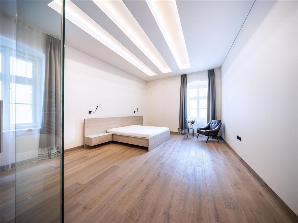Od přímého majitele nabízíme prémiové nájemní bydlení na Praze 1 v ulici Truhlářská. Byt 3+kk o velikosti 192 m2 se nachází v 5. nadzemním podlaží v rekonstruovaném domě s výtahem. O vzhled interiéru se s důrazem na funkčnost a design postaralo vyhlášené architektonické studio de.fakto. Dominantou bytu je prostorný a díky množství oken světlý obývací pokoj, který je spojený s kompletně vybavenou kuchyní a jídelnou. Dále tento velkoryse řešený byt disponuje hlavní ložnicí s kompletně vybavenou ensuite koupelnou s produkty značky Preciosa, druhou ložnicí, šatnou a samostatnou koupelnou s vanou, sprchovým koutem, toaletou a bidetovou sprškou. Prostorná vstupní hala ukrývá vestavěné skříně, které poskytují elegantně řešené úložné prostory. Komfort bydlení doplňuje stropní systém chlazení a vytápění, stejně jako vysokorychlostní internet. Byt je nabízen ve vysokém standardu vybavení. Obdobný byt máme v nabídce také ve 3. NP. Parkování je možné pronajmout v blízkém OC Palladium (vstup 150 m od domu). Provize činí 50% nájmu bez poplatků, kauce je ve výši 170 000, Kč, poplatky činí 14 500, Kč. K pronájmu od 1.8.2025, prohlídky možné od 1.7.2025. Objevte prémiové bydlení v Truhlářské ulici v srdci Prahy nabízí luxusní, zařízené moderní byty v rekonstruované historické klasicistní rezidenci. Výhodná lokalita se skvělou dopravní dostupností. Kromě toho, že pěšky máte na dosah Staroměstské i Václavské náměstí, Pařížskou, Karlův most, Pražský hrad, Letnou i Stromovku, jste jen pár kroků od stanice metra Náměstí Republiky (trasa B) a řady tramvajových linek. V blízkosti se nachází oblíbené nákupní centrum Palladium.