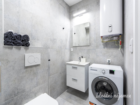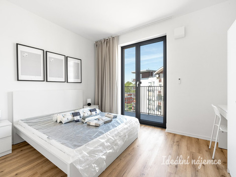 K dlouhodobému podnájmu nabízíme krásný nový, kompletně vybavený byt o dispozici 2+kk v klidné lokalitě Kyje vybavený inteligentním přístupem do domu i bytu. Byt o celkové výměře 42m2 + 5,5m2 balkon, se nachází ve 2. podlaží cihlového domu s podlahovým vytápěním. Byt se nabízí plně vybavený. Kuchyně disponuje lednicí, myčkou, elektrickou troubou, varnou deskou, mikrovlnnou troubou, rychlovarnou konvicí a digestoří. Obývací část je zařízena rozkládací pohovkou, tv stěnou s televizí, jídelním stolem a židlemi. V ložnici je postel, matrace včetně lůžkovin a ložního prádla, skříně, stůl a židle. V koupelně je sprchový kout, umyvadlo, toaleta, pračka, i ručníky. Základní internetové připojení je v ceně služeb. Přímo v domě se nachází fítness centrum, kadeřnictví a nehtové studio. V okolí domu najdete restaurace, supermarket, základní a mateřskou školu, lékárnu atd. Výborná dopravní dostupnost: - Čtyři minuty chůze od domu je zastávka metra Rajská Zahrada a vlaková stanice Praha Rajská Zahrada vlakem (!!za 13 minut v centru Prahy!!) - Autobusové zastávky jsou hned vedle domu. Majitel preferuje zájemce bez domácích mazlíčků. Byt je volný k nastěhování od 1.3.