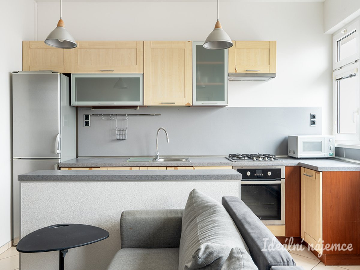 K dlouhodobému podnájmu nabízíme krásný byt o dispozici 2+kk v oblíbené lokalitě Praha 7 - Holešovice. Byt o celkové výměře 46 m2 se nachází v nejvyšším, 5. patře cihlového domu bez výtahu. K bytu patří i balkon. Byt se nabízí částečně vybavený. Kuchyně disponuje lednicí s mrazákem, elektrickou troubou s plynovou varnou deskou, mikrovlnnou troubou a digestoří. Obývací část je zařízena pohovkou, konferenčním stolem a obývací stěnou. Součástí ložnice je postel a 2 šatní skříně. V koupelně je vana, umyvadlo, koupelnová skříňka, pračka a WC. V předsíni je vestavěná skříň. V okolí domu najdeme restaurace a kavárny, supermarkety Albert, Penny Market a Billa, polikliniku s lékárnou, poštu, holešovickou tržnici, městskou knihovnu, multifunkční prostor VNITROBLOCK, hudební klub Cross Club, Centrum současného umění DOX, divadlo La Fabrika, městskou zeleň (Tamirův park, Park U Vody, Ladislavův park) atd. Pár minut chůze od domu je vzdálena tramvajová zastávka Ortenovo náměstí a v docházkové vzdálenosti je stanice metra C - Nádraží Holešovice a vlaková stanice Praha-Holešovice. Byt je volný k nastěhování ihned. Energetická třída: G (průkaz nedodán).