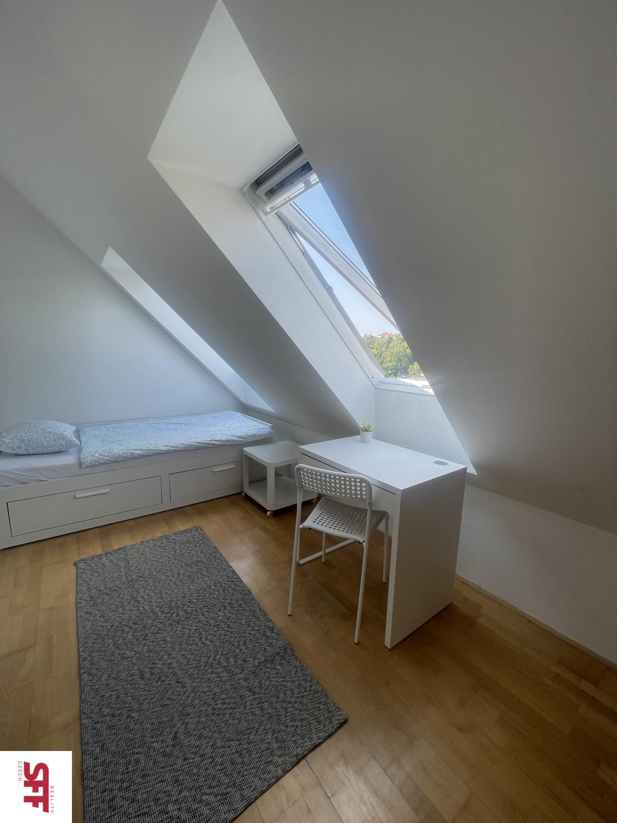 K dispozici od 2.2.2026. Neplatíte provizi - pronájem vybaveného pokoje s přístupem na terasu ve sdíleném bytě, Praha 6 Pohořelec. Nabízíme ke střednědobému nebo dlouhodobému pronájmu světlý a útulný pokoj (č. 502-1) o velikosti 11 m2 ve sdíleném bytě o celkové rozloze 76 m2. Byt se nachází v 5. patře udržovaného historického domu bez výtahu v atraktivní lokalitě Praha 6 Pohořelec, jen pár minut chůze od Pražského hradu. Pokoj je vybaven postelí, pracovním stolem, židlí, komodami a šatní skříní. Společné prostory zahrnují plně vybavenou kuchyň s elektrickou plotýnkou, mikrovlnnou troubou, lednicí s mrazákem, myčkou nádobí a základním kuchyňským vybavením. K dispozici je také pračka se sušičkou. Byt má jednu koupelnu se sprchovým koutem, umyvadlem a toaletou. Lokalita nabízí jedinečné spojení historického kouzla a zeleně s výbornou dostupností do centra. V docházkové vzdálenosti jsou Petřínské sady, obchody, kavárny i restaurace. Tramvajová zastávka Pohořelec (linky 22 a 23) je jen pár kroků od domu, metro A Malostranská je dostupné tramvají přibližně za 10 minut. Nájemné včetně poplatků a internetu: pro jednu osobu: 16.000 Kč / měsíc Pokoj je ideální pro jednotlivce, kteří hledají pohodlné bydlení v klidné a reprezentativní lokalitě s výborným spojením do centra Prahy. K dispozici od 2.2.2026.