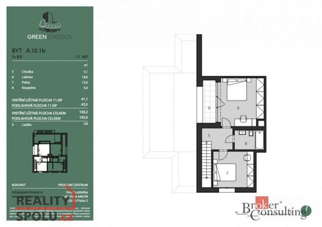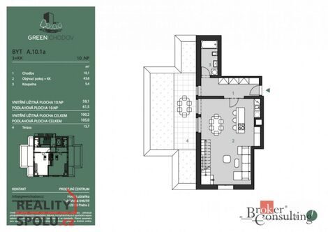 Představujeme vám jedinečnou nemovitost v nově vznikajícím rezidenčním projektu Green Chodov. Moderní architektura, vysoký standard a atraktivní lokalita dělají z Green Chodova místo, kde se propojuje komfortní městský život s klidem přírody ideální jak pro vlastní bydlení, tak i pro bezpečnou investici. Tento luxusní mezonetový byt 3+kk zaujímá nejvyšší dvě podlaží jedenáctipatrového domu a nabízí promyšlené dispoziční řešení s důrazem na prostor, světlo a nadčasový design. Standard odpovídající exkluzivitě bytu - Třívrstvá dřevěná podlaha - Klimatizace a rekuperace vzduchu součástí ceny Předokenní žaluzie pro dokonalé stínění a soukromí Výška stropů 2,8 m v ložnicové části pocit prostoru a vzdušnosti Byt vyniká panoramatickým výhledem na Prahu a dvojicí venkovních prostor: Terasa v 10. patře s přístupem z obývacího pokoje Lodžie v 11. patře přístupná z hlavní ložnice Dispozice celková podlahová plocha: 105 m terasa: 16 m lodžie: 6 m sklep: 2,3 m garážové stání - je třeba dokoupit za 950 000 Kč. Projekt se nachází v bezprostřední blízkosti metra Chodov, obchodního centra Westfield, sportovišť a parku Trojmezí ideální rovnováha mezi městem a přírodou. Projekt Green Chodov byl nominován na Realitní projekt roku 2025, což potvrzuje jeho kvalitu, architektonickou úroveň a výjimečnost. <a href="https://www.eurobydleni.cz/domy/rodinny-dum/benesov/obec-bilkovice/prodej/"><strong>Prodej rodinného domu Bílkovice</strong></a>