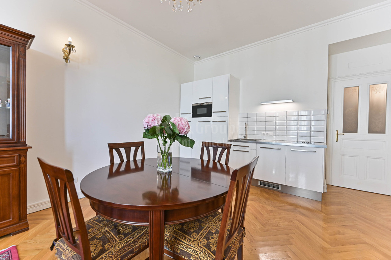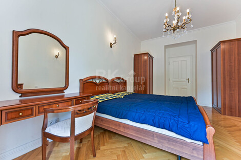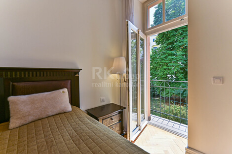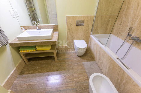 Dovoluji si Vám nabídnout stylový a prostorný byt 3+kk se dvěma balkóny orientovaný do zahrady plné zelěně ve 3. podlaží (s výtahem) krásně zdobeného zrekonstruovaného domu přímo u Reigrových sadů. Byt je kompletně vybavený drahým italským nábytkem viz. fotografie. Dispozice bytu je idální, místnosti jsou neprůchozí, ložnice s balkóny (19 m2 a 18 m2 s balkony 6 m2 a 1,3 m2) jsou orientované do klidné zahrady a pokoj s kk do ulice s pěkným výhledem. Kuchyňská linka je vybavena spotřebiči (myčka, lednice s mrazákem, indukční dvouplotýnka, mikrovlnná trouba), v předsíni je velká vestavěná skříň, pro komunikaci s venkem je byt vybaven videotelefonem, koupelna je obložena italským mramorem a vybavena vanou, závěsným WC i bidetem. Vytápění i ohřev vody je zajištěn vlastním plynovým kotlem schovaným spolu s pračkou ve skříni ve vstupní hale. Na podlahách jsou masivní parkety a dlažba. Dům je po luxusní rekonstrukci se zachováním a renovacemi původních prvků. Lokalita je klidná s výbornou dostupností do centra města. Riegrovy sady i Náměstí Jiřího z Poděbrad jsou prakticky za rohem. Lokalita nabízí výbornou občanskou vybavenost a nejen pro to patří k nejvyhledávanějším místům v Praze. K ceně je třeba připočíst poplatky za vodu a služby v domě ve výši 750 Kč/os, elektrika a plyn budou po dobu nájemného přepsány na nájemce. Byt je připraven k nastěhování cca od 1.2., prohlídky a rezervace jsou již možné. Preferujeme slušné nájemce bez domácích mazlíčků. Energetickou třídu G uvádíme z důvodu zatím nedodaného energetického štítku.