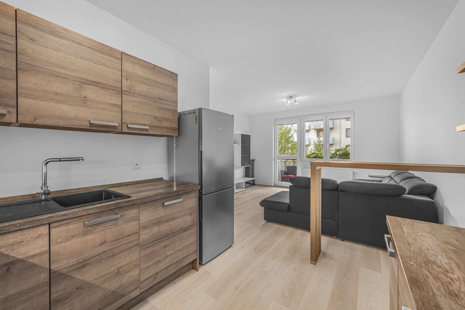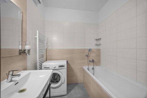 Nabízíme k prodeji byt 2+kk o podlahové ploše 57 m2 s balkonem o výměře 3 m2, situovaného ve 2. patře cihlového domu s výtahem v ulici Bermanova, Čakovice. Dispozičně nabízí vstupní chodbu, obývací pokoj s kuchyňským koutem, ložnici, koupelnu s vanou a samostatnou toaletu. K bytu náleží sklep (2 m2). Výborná dopravní dostupnost. V okolí se nachází mateřská a základní škola, střední škola, gymnázium, lékař, hypermarkety, pošta, restaurace, dětská hřiště, Čakovický zámecký park. Prodej příjemně světlého a útulného bytu s balkónem, a hezkým výhledem, 2+KK/B/S/GS, 57 m2 + 3 m2 balkón + 2,5 m2 sklep, 2.p./5, novostavba z roku 2016, OV, cihla, Praha 9 - Čakovice. Na podlahách dlažba a kvalitní laminátové plovoucí podlahy, interiérové dveře. Kuchyňská linka na míru (keramický dřez, varná deska, multifunkční trouba, digestoř s odtahem do komína, lednice s mrazničkou). Z obývacího pokoje je vstup na balkón, orientovaný na severozápad, s příjemný výhledem na nedaleký rybník a do okolí. V koupelně je umyvadlo se spodní skříňkou, plastová vana, je zde místo i pro pračku, WC je umístěné mimo koupelnu. Dále se zde nachází světlá Ložnice. K dispozici je taktéž prostorná vstupní chodba s uložným prostorem na oblečení a boty. Okolí domu je osázeno vhodně zvolenou zelení a květinami, a je pravidelně udržováno jak městskou částí, tak i spoluvlastníky okolních domů. V bezprostřední blízkosti se nachází potraviny, kavárna a restaurace, mateřská školka, mnoho venkovních sportovišť a dětských hřišť, velmi vyhledávaný zámecký park a rybníky, na kterých lze i bruslit. Velké nákupní možnosti nabízí Globus nebo Lidl, oba supermarkety jsou v docházkové vzdálenosti od domu. MHD - autobusová zastávka je 3 minuty pěšky, na metro C-Letňany cesta trvá 12 minut, nebo můžete využít vlak, který jede do centra Prahy, kdy cesta trvá 20 minut. V domě je internet a kabelová televize. Měsíční zálohy 4.900,- Kč včetně fondu oprav. K bytu patří parkovací stání přízemí domu nedaleko od vstupu k výtahu. Energetická třída C - Úsporná. Součástí prodeje bytu je kuchyňská linka se spotřebiči a vestavěný nábytek. Ostatní nábytek je možné po dohodě v bytě ponechat. Prohlídky jsou možné kdykoliv po domluvě. Doporučuji prohlídku.