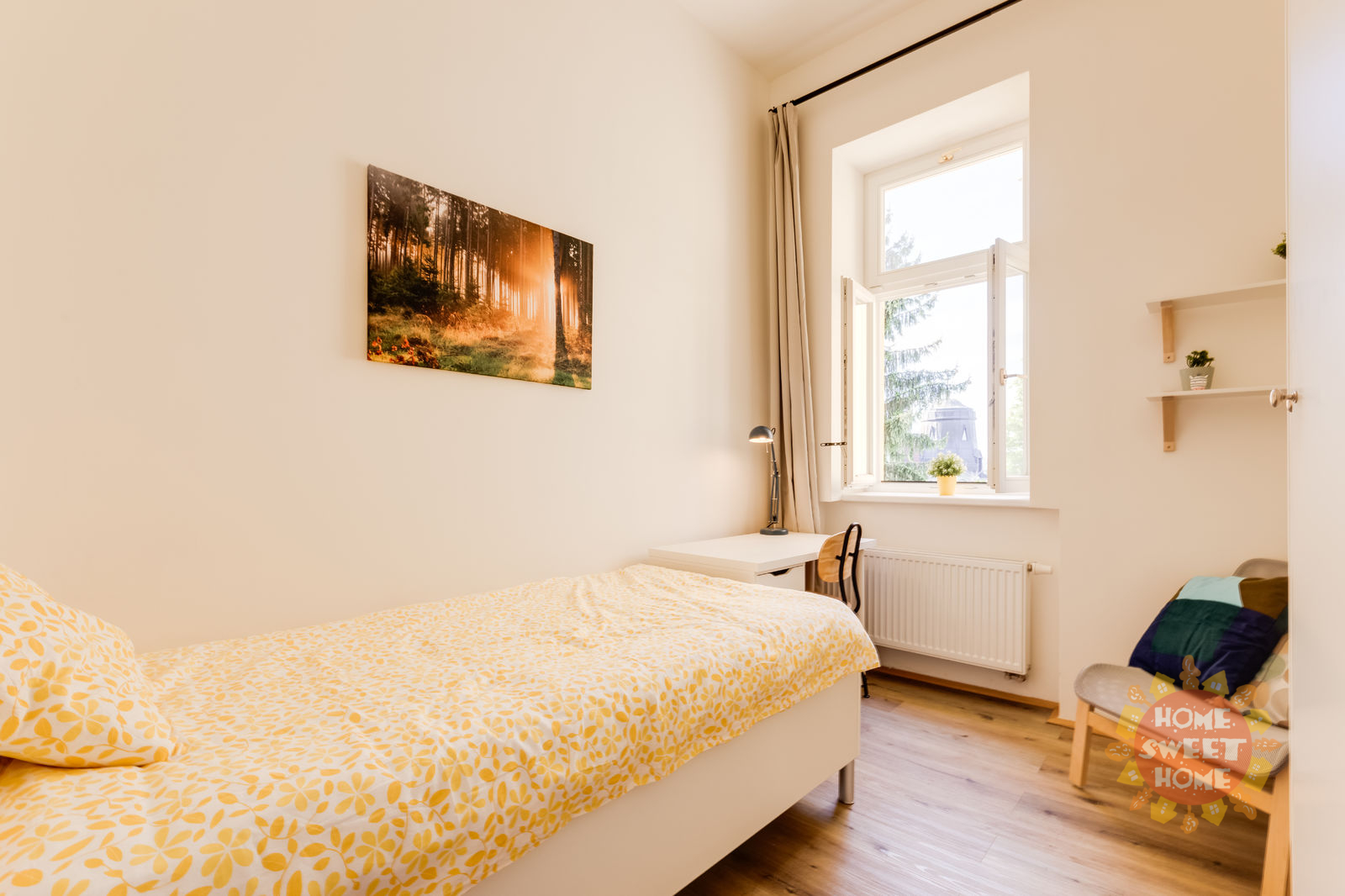 Nabízíme krásný, plně zařízený pokoj o velikosti 12 m2, který se nachází v 1.patře residence Řehořova, Žižkov. Byt prošel kompletní rekonstrukcí. Pokoj je součástí šestipokojového bytu s plně vybavenou kuchyní, jídelním koutem, dvěma koupelnami a samostatnou toaletou. Společné prostory jsou kompletně vybaveny včetně žehličky, úklidových pomůcek a dalších potřeb pro běžný provoz. Samotný uzamykatelný pokoj je vybavený postelí, pracovním stolem, šatní skříní, přikrývkou a polštářem. Internet a úklid společných prostor (1× týdně) jsou již zahrnuty v ceně nájmu. Dům se nachází v oblíbené lokalitě blízko centra, jen pár minut od Vysoké školy ekonomické. V okolí je výborná občanská vybavenost - kavárny, restaurace, obchody a další. Dopravní dostupnost - 5 minut na stanici tramvají Viktoria Žižkov (1 stanice na metro Hlavní nádraží, linka C, 3 zastávky na Václavské náměstí). V blízkosti je několik rozsáhlých parků - Mahlerovy sady, Vítkov a Riegrovy sady. Bydlení je vhodné především pro studenty na střednědobý pronájem. Pokoj je volný od začátku února 2026.
