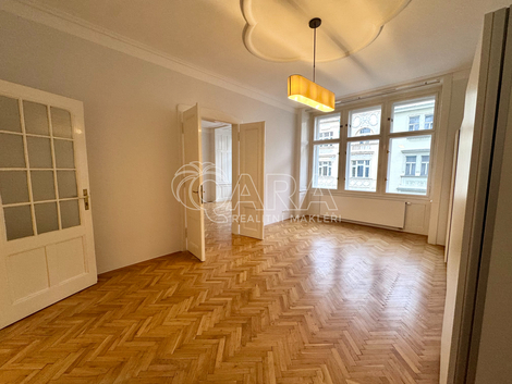 Nabízíme k dlouhodobému pronájmu luxusní, prostorný byt / kancelář 4+1 (147 m2) s balkonem a velkým sklepem (20 m2) v prestižní lokalitě Královských Vinohrad. Dispozice: Byt se nachází ve 4. patře udržovaného domu s výtahem. Vstupní a spojovací hala, 3 prostorné ložnice, obývací pokoj, kuchyň s kuchyňskou linkou (lednice s mrazákem, sporák, trouba, digestoř a myčka). Dvě koupelny: koupelna s vanou a sprchovou zástěnou, dvojumyvadlem a WC, samostatné WC, koupelna se sprchovým koutem, umyvadlem a pračkou se sušičkou. K dispozici je také komora, balkon do klidného dvora se zelení a sklep. Bydlet na Královských Vinohradech znamená žít v jedné z nejžádanějších a nejpůvabnějších částí Prahy, kde se noblesa historické architektury přirozeně prolíná s moderním městským životem. Ulice Polská leží v samém srdci Vinohrad - v klidné zóně obklopené vzrostlými stromy a elegantními činžovními domy, jen pár kroků od Riegrových sadů, které nabízejí dechberoucí výhled na Pražský hrad i ideální místo pro ranní běh, piknik nebo posezení při západu slunce. V okolí najdete stylové kavárny, vinárny, restaurace i lokální obchody, které dávají čtvrti její nezaměnitelný charakter. Náměstí Jiřího z Poděbrad s ikonickým kostelem Nejsvětějšího Srdce Páně a oblíbenými farmářskými trhy je v docházkové vzdálenosti. Pro lepší orientaci doporučuji nahlédnout na přiložený plánek, ale pozor! Jsou tam ještě rozdělené byty č. 8 a 9. Ty jsou nyní spojeny. K nastěhování ideálně přelom leden/únor Nájemné: 65 000 Kč/měs. Služby: 950 Kč/os. Energie se převádějí na nájemce Vratná kauce dva nájmy / Provize V případě zájmu mě neváhejte kontaktovat, prohlídky jsou možné po domluvě se stávajícím nájemcem.