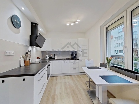 Nabízíme k prodeji světlý byt o dispozici 2+kk a ploše 53 m2, který poskytuje komfortní bydlení s prostornou terasou o velikosti 15 m2, vlastním sklepem 3,2 m2 a krytým parkovacím stáním. Byt se nachází v moderní novostavbě Jižní Výhledy, kde byl kladen důraz na kvalitu, pohodlí a praktické využití prostoru. Byt je situován ve 2. nadzemním podlaží pětipatrového cihlového domu. Díky jihovýchodní orientaci je interiér krásně světlý po celý den. Zároveň je byt vybaven roletami/žaluziemi, které zajišťují účinnou ochranu před sluncem, letním horkem i nežádoucími pohledy a přispívají ke klidnému a pohodovému bydlení. Srdcem bytu je propojený obývací pokoj s kuchyňským koutem, který vytváří příjemnou a otevřenou atmosféru, ideální pro společné chvíle s rodinou nebo přáteli, relaxaci či klidné odpolední posezení. Kuchyň je vybavena kvalitními vestavnými spotřebiči značky Bosch - myčka, lednice s mrazákem, trouba a indukční varná deska - a digestoř značky Franke. Z obývacího prostoru je přímý vstup na terasu, ideální pro ranní kávu, relaxaci nebo večerní posezení. Na terasu je zároveň vstup i z ložnice, což zvyšuje komfort bydlení. Ložnice je navržena s důrazem na maximální komfort spánku - rolety/žaluzie umožňují dokonalé zatemnění a klidný spánek. Koupelna je prakticky řešená a vybavená vanou společně s toaletou, prostor je navržen tak, aby poskytoval pohodlí a relaxaci v intimním soukromí vašeho domova, ideální pro klidné a relaxační chvíle po náročném dni, a navíc je vybavena koupelnovým žebříkem, který zajišťuje příjemné teplo a pohodlí. Praktické řešení interiéru doplňuje vestavná skříň v chodbě pro uložení oděvů a obuvi a samostatná šatna, kde je prostor pro pračku a sušičku. Lokalita na pomezí Řeporyjí a Stodůlek nabízí ideální kombinaci klidu, zeleně a výborné občanské vybavenosti. Pouhých 200 m od domu se nachází supermarket Billa, v nedalekém obchodním centru Luka pak Albert a Tesco. V pěší dostupnosti do 10 minut je ZŠ Trávníčkova, v okolí jsou také tři mateřské školy do 500 m. Milovníci přírody ocení Dalejské údolí vzdálené přibližně 2 km, odkud lze navázat až na Prokopské údolí, ideální pro procházky, běh či cyklovýlety. Výborná je rovněž dopravní dostupnost - v dosahu jsou stanice metra B Luka a Stodůlky, zastávky MHD a rychlé napojení na hlavní dopravní tahy. Byt představuje vyváženou kombinaci moderního bydlení, světlého interiéru a praktického zázemí v lokalitě s kompletní občanskou vybaveností. Doporučuji osobní prohlídku, případně je k dispozici virtuální prohlídka a fotografie, díky nimž si můžete byt pohodlně projít i z domova.