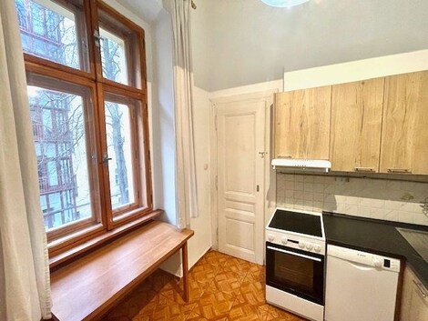 Zprostředkujeme Vám prodej bytové jednotky 3+1, o obytné ploše 76 m2, nacházející se v prvním patře čtyřpatrového cihlového domu. Dům je umístěn v samotném centru Prahy v ulici Petřínská, v lukrativní lokalitě Praha 5 Malá Strana, hned kousek od nádherného lesoparku Zahrady Kinských s letohrádkem. Bytová jednotka se prodává částečně vybavená nábytkem, v kuchyni o ploše 2,8 x 2,6 m ( 7,2 m2 ) s komorou o ploše 1,5 x 1 m ( 1,5 m2 ) je kuchyňská linka s elektrickým sporákem s horkovzdušní troubou, myčkou nádobí, odsavačem pár a kombinovanou lednicí. V obývacím pokoji o ploše 6,1 x 3,1 m ( 19 m2 ) je jídelní stůl se židlemi a obývací sestava, v dětském pokoji o ploše 2,8 x 5,44 m ( 15,2 m2 ) je vyvýšené patro s dvojlůžkem a úložnými prostory, dále je zde skříň a pracovní stůl. V ložnici o ploše 5,44 x 3,85 m ( 21 m2 ) je umístěna manželská postel, komoda a šatní skříň. V chodbě o ploše 4,1 x 1,5 m ( 6,2 m2 ) je snížení strop s úložním prostorem. Obývací pokoj s kuchyní je orientován na severozápad s výhledem do zahrady vnitrobloku, ložnice a dětský pokoj jsou orientovány na jihovýchod s výhledem do ulice Petřínská. V koupelně o ploše 1,8 x 2,8 m ( 5,04 m2 ) je kromě vany a umývadla, umístěna pračka se sušičkou. Na podlaze pokojů je položena plovoucí laminovaná podlaha, v obývacím pokoji je lino, v předsíní, kuchyni, koupelně a toaletě je položena keramická dlažba. Topení je v pokojích zabezpečeno elektrickými infrapanely, na toaletě o ploše 1,4 x 1 m ( 1,4 m2 ) je umístěn elektrický bojler na teplou vodu. V bytové jednotce je nainstalovaná telefonní přípojka s možností zapojení kabelové televize a internetu. K bytu přináleží sklep o ploše 2,9 x 1,9 ( 5,5 m2 ) a je možné využívat i zahradu ve vnitrobloku domu. Dopravní dostupnost a občanská vybavenost je v této lokalitě na vynikající úrovni, jenom dvě zastávky tramvají se dostanete na metro "B” Anděl, nebo metro "A” Malostranská. V okolí domu se kromě Zahrady Kinských, nacházejí malebné malostranské hospůdky, restaurace, kavárničky, obchody, muzeum, gymnázium, v docházkové vzdálenosti je Karlův most, Malostranské náměstí, Pražský hrad, Staroměstské náměstí, Petřínská rozhledna, nebo nákupní centrum Nový Smíchov. Pokud máte zájem o koupi bytu pro vlastní bydlení, nebo jako investici v lukrativní lokalitě centra Prahy, pak Vám koupi této bytové jednotky upřímně doporučuji.