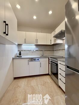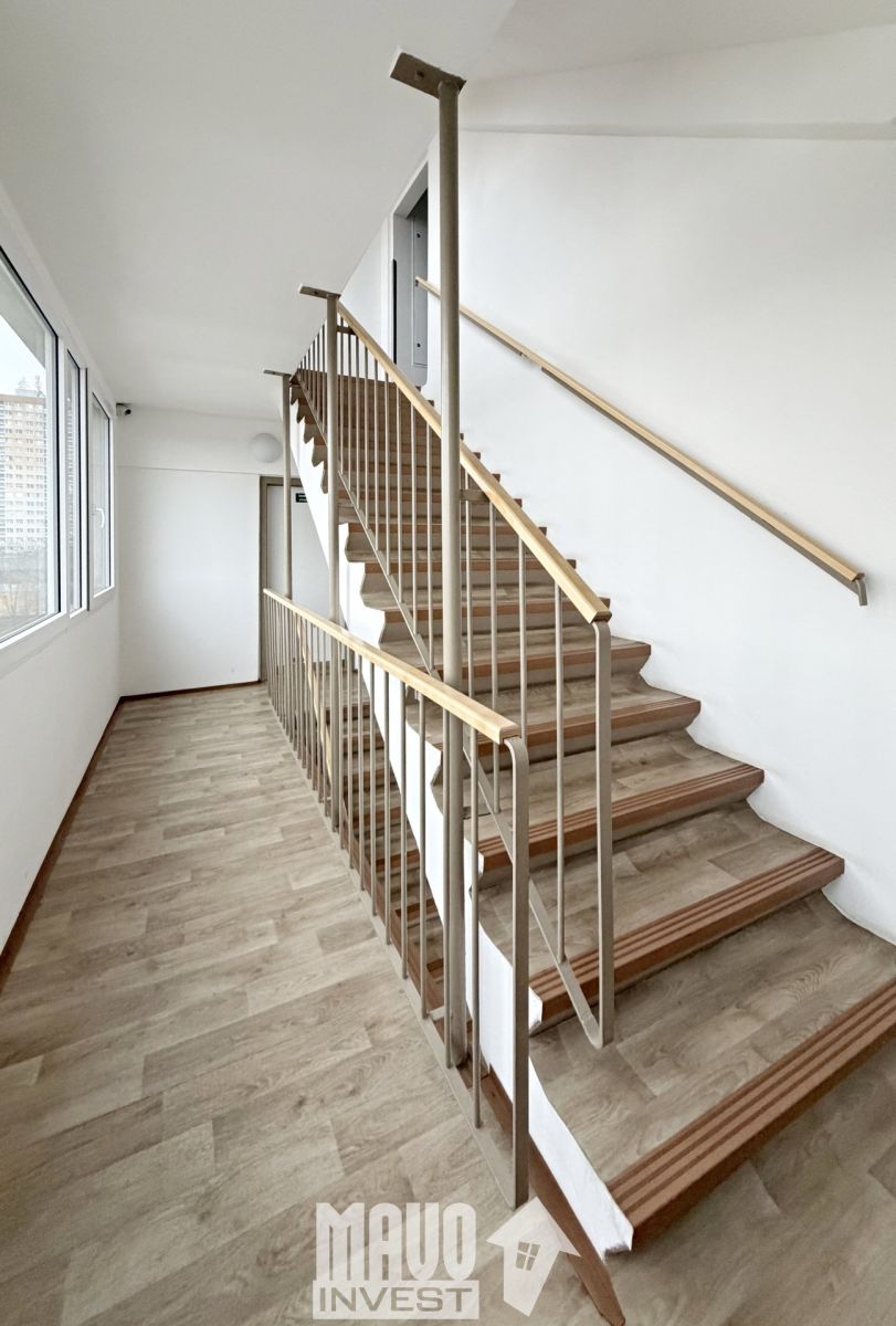 Skvělá nabídka zrekonstruovaného bytu 2+kk/komora (42,5m2 +2,5m2), vše v 5.NP panelového domu s orientací oken na jih. Byt prošel kompletní rekonstrukcí, kdy poslední úpravy proběhly v roce 2023 realizací kuchyňské linky, kompletním rozvodem elektřiny a vestavné skříně v chodbě plus další. Dispozice je tvořena chodbou tvaru "L" otevřeně navazující na obývací pokoj s odděleným kuchyňským koutem, uzavřenou ložnicí a v neposlední řadě koupelnou a samostatným WC. Součásti kupní ceny jsou všechny pevně ukotvené vybavovací předměty, tj. šatní skříně v ložnici a chodbě, vyklápěcí postel v obyv. pokoji, kuchyňská linka aj. Rekonstrukce společných interiérů domu vč. nového rozvodu elektřiny proběhla před 5-6 lety. V roce 2025 byly instalovány venkovní rolety s vnitřním el. ovládáním a v letošním roce počínaje lednem je plánovaná příprava pro realizaci zateplení budovy (úprava projektu a výběrové řízení realizační firmy + úvěr). V domě jsou instalovány bezpečnostní kamery. Dodávka tepla a teplé vody je zajištěno dálkově. Občanská vybavenost vč. lékařů je v docházkové vzdálenosti 2-4 minut klidnou chůzi. Koupi bytu lze financovat hypotékou, kterou vám rádi zajistíme.