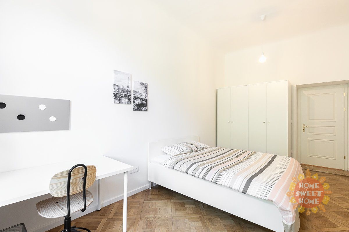 Krásný, zařízený pokoj 18m2 se společnou, zařízenou kuchyní s jídelním koutem, koupelnou se sprchou a toaletou se nachází v Residenci Kinských v 1. patře cihlového domu v ulici nám.Kinských, Praha 5. Dům prošel kompletní rekonstrukcí roku 2019. Pokoj i byt je kompletně zařízený, včetně žehličky, prkna a vybavení na úklid. V pokoji je manželská postel. Nachází se v 4 pokojovém bytě s 2 koupelnami a extra toaletou. Úklid společných prostor je již zahrnut v ceně nájmu, a to jednou týdně. Dále je také k dispozici zcela zdarma fitness, prádelna (na mince) a společná terasa. Rezidence se nachází ve velice oblíbené lokalitě přímo v centru města a v těsné blízkosti zahrady ,,Kinských" a parku ,,Petřín". Výborná občanská vybavenost : obchodní centrum Anděl, Cinema City Nový Smíchov, školy, restaurace , bary a mnoho dalšího. Výborné dopravní spojení: 200m na tram. zastávku ,, Újezd", 10min chůze stanice metra Anděl nebo pět zastávek tram. na vlakové nádraží ,,Praha - Smíchov". Vhodné především pro střednědobý pronájem.