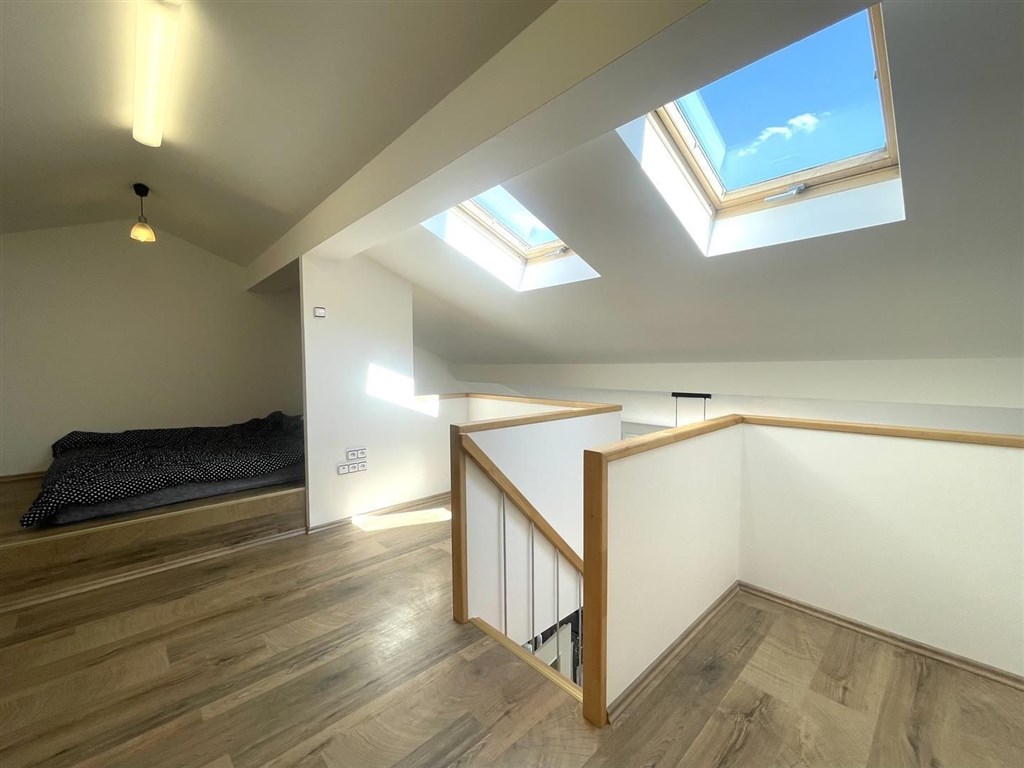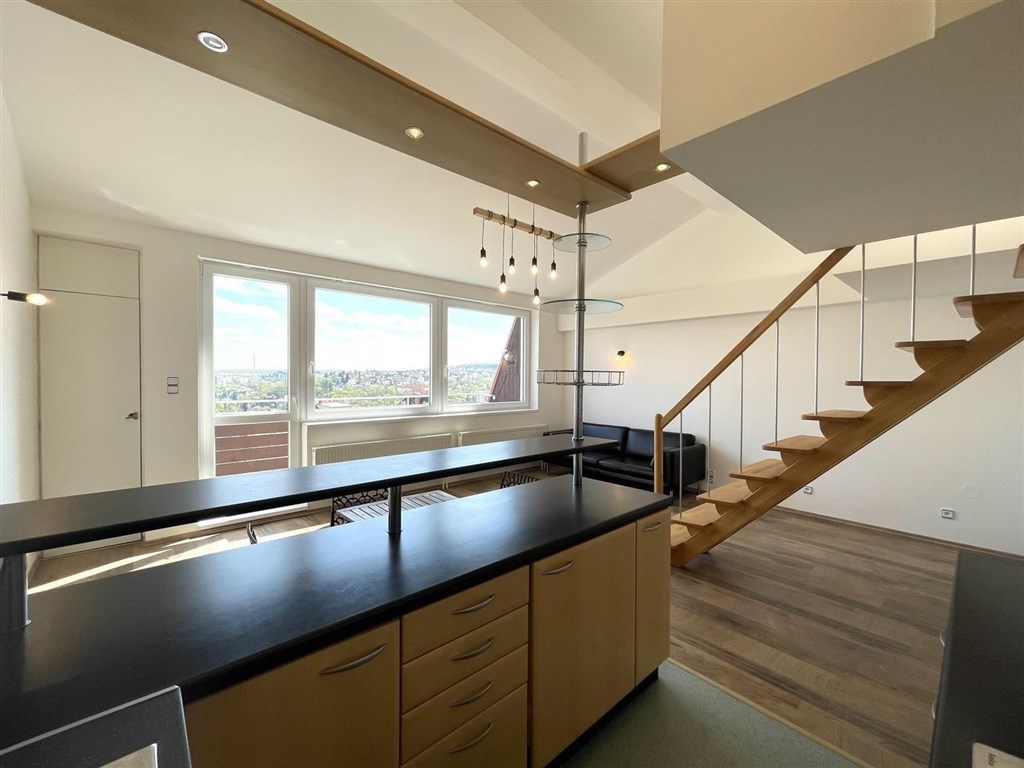 Exkluzivní pronájem světlého a zajímavě řešeného mezonetového bytu 3+kk s balkonem (75 m2), v žádané lokalitě Hřebenka v Praze 5 - Smíchov. Byt je situován ve 3. patře dobře udržovaného cihlového domu (bez výtahu) v ulici Nad Palatou a z lodžie je nádherný panoramatický výhled na centrum Prahy. Dlouhodobý pronájem min. na 1 rok a déle. Byt je volný od 01.03.2026. Byt je na klidném místě obklopeném zelení a v docházkové vzdálenosti jsou park Ladronka, lesopark Hvězda a Petřínské sady. Přímo za domem je pro relaxaci malý parčík. Veškerá občanská vybavenost je samozřejmostí, zastávka autobusu MHD je 150 m a spojení do centra trvá cca 15 minut. Parkování je možné na ulici před domem a v okolních ulicích (parkovací zóny pro rezidenty). V bytě se nachází obývací pokoj s plně vybaveným kuchyňským koutem (lednice, mrazák, myčka, varná deska, horkovzdušná trouba) a lodžie, ložnice, vstupní hala, koupelna s rohovou vanou, pračkou a v rámci koupelny je oddělené WC. Schodištěm z obývacího pokoje je přístupný další obytný prostor a v bytě se dále nachází dvě praktické komory. Byt je částečně vybaven, zůstávají dvě vestavné skříně a pohovka dle dohody. Ústřední vytápění a ohřev vody je na plyn (kondenzační kombi kotel), okna jsou plastová s izolačním dvojsklem, interiérové dveře dřevěné, vstupní dveře bezpečností, na podlahách je vinyl - altro, keramická dlažba a laminátová plovoucí podlaha. Do bytu je zaveden internet, a dále možnost připojení UPC. Byt je nekuřácký, obsazenost do max. 3 osoby, bez domácích mazlíčků, zúčtovatelná záloha (plyn+elektřina+vodné / stočné) 4.000,Kč/na byt pololetní kalendářní vyúčtování dle skutečnosti, dále paušální poplatek 739,Kč na osobu / 3 osoby = 2.217,Kč (komunální odpad, společná elektřina, úklid společných prostor apod.). Vratná kauční jistota je částka dvojnásobku měsíčního pronájmu. Poplatek RK neplatíte. Pokud Vás nabídka zaujala, rezervujte si termín na prohlídkovém dni u makléře formou kontaktního formuláře. Kromě běžných prohlídek nemovitostí, dále nabízíme formu videoprohlídek v reálném čase přes WhatsApp, FaceTime, Messenger atd.