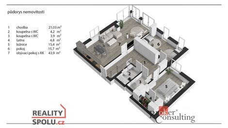 Nabízíme Vám nadstandardně prostorný, dokončený byt 3+KK o ploše 119,2 m2 s terasou 37 m2 v komorním projektu tří bytových domů v Rezidenci Klíčov,…