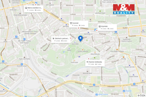 Nabídka pronájmu bytu 2+1 o užitné ploše 60 m2 v lukrativní lokalitě na rozhraní Vinohrad a Vršovic, hned u parku Grébovka. Byt se nachází ve 3. patře cihlového domu. Dispozice bytu zahrnuje dva samostatné pokoje, koupelnu se sprchou i vanou a kuchyňský kout v předsíni, samotné wc a komoru. Balkon je dostupný na mezipatře domu. Lokalita nabízí klidné bydlení s výhledem na Prahu a zároveň výbornou dostupnost do centra města. V pěší vzdálenosti 4-10 minut se nachází metro, tramvaj i vlak. Okolí je bohaté na služby a společenské akce v Havlíčkových sadech. Nájem činí 19,5 tis. Kč + 4 tis. Kč poplatky pro 2 osoby. Elektřina se přepisuje na nájemníka. Neváhejte a bydlete v srdci Prahy! Datum možného stěhování od 10.2.