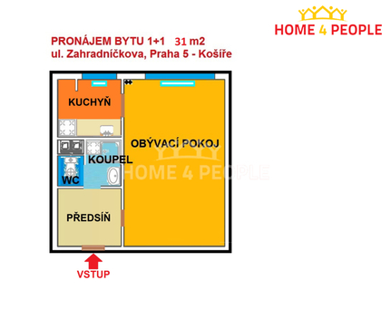 Zprostředkujeme Vám výhradní pronájem bytu o dispozici 1+1 a obytné ploše 31 m2. Byt se nachází ve třetím nadzemním podlaží (2.patro) čtyřpodlažního zatepleného cihlového domu bez výtahu v pražských Košířích, v ulici Zahradníčkova. Byt je v osobním vlastnictví a má následující dispozice: kuchyň s oknem, předsíň, koupelna s kvalitním sprchovým koutem a pračkou, samostatné WC, pokoj V bytě je následující vybavení: kuchyňská linka se spotřebiči - lednice, digestoř, el. sporák, pračka, televize, v pokoji masivní dvoulůžko s kvalitní matrací, psací stůl se židlemi, skříně, nové radiátory atd. Na podlaze je položeno PVC, koberce a dlažba. Ohřev vody a topení je řešen ústředním rozvodem z vlastní kotelny v domě (lepší cena než z teplárny). Nová plastová okna se žaluziemi směřují k západu do zeleně za domem. Cihlový dům byl v roce 2016 zateplen a celkově revitalizován - průkaz energetické náročnosti budovy - třída C, byla provedena celková rekonstrukce fasády, střechy, všech rozvodů a chodeb, společenství vlastníků velmi dobře funguje. Je možno užívat společnou kolárnu. Internet je zaveden - O2, VODAFONE, T-MOBILE, PE3NYNET. Parkování je bezproblémové před domem - možnost vyřízení modré zóny pro celou Prahu 5. V lokalitě pražských Košíř je veškerá občanská vybavenost: škola, školka, kostel, kino, restaurace, lékař, lékárna, pošta, nákupní středisko. Dále se zde nachází park Homolka, park Cibulka, golfové hřiště Motol, motolské rybníky a koupaliště, tenisové centrum, minigolf atd. MHD - tram č. - 1 min. pěšky; BUS - 5 min.; Metro B - Anděl 10 min, Metro A - Motol 5 min. Je zde krásné a klidné bydlení blízko centra města. Rezervace možná ihned, byt je přípraven k nastěhování od 3/2026!!! Velmi doporučujeme osobní prohlídku. Ev. číslo: 30997. Energetický štítek: C (82 kWh/m2/rok).