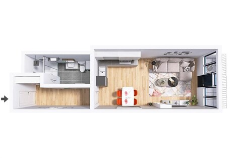 Ráno světlo, večer klid. A mezi tím město na dosah. Byt 1+kk v projektu Lofty Kolbenova dokazuje, že industriální minulost a moderní bydlení si mohou skvěle rozumět. Přiznaný beton a velkoformátová okna odkazují na historii místa, zatímco promyšlené detaily, ticho a současné standardy zajišťují komfort dneška. Vznikl tak byt, kam se budete rádi vracet. Nachází se ve Vysočanech, jen pár minut chůze od stanice metra Kolbenova, odkud jste rychle v centru i na cestě ven z Prahy. Byt o ploše 33,36 m2 je situován v nejvyšším patře, díky čemuž nabízí dostatek denního světla, otevřený výhled a příjemný pocit soukromí. Balkon o velikosti 4,51 m2 se snadno stane místem pro ranní kávu či krátký odpočinek během dne. Praktický sklep (1,70 m2) řeší úložné prostory. Interiér staví na kontrastu betonu, dřeva a hliníkových oken, které prostoru dodávají nadčasový charakter. O pohodlí se stará klimatizace, rekuperace, podlahové vytápění i venkovní stínění. Okolí žije - kavárny, bistra, galerie, sport i zeleň podél Rokytky jsou na dosah. Naproti projektu stojí Pragovka, centrum kultury a gastronomie, v pěší vzdálenosti je také NC Fénix a O2 aréna. Byt je ideální pro vlastní bydlení i jako chytrá investice díky lokaci, charakteru projektu a stabilní poptávce po kvalitním nájemním bydlení. Možná právě tady začíná vaše další kapitola - přijďte se přesvědčit. Poznámka: Byt se prodává nevybavený. Vizualizace představují jednu z možností designového stylu vybavení bytu.