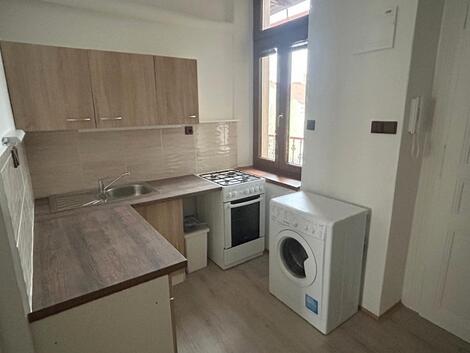 Nabízíme dlouhodobý pronájem bytu 1+1 v činžovním domě 2 minuty pěšky od stanice metra Palmovka. Nemovitost je situována v 3.patře domu bez výtahu. Byt prošel částečnou rekonstrukcí a nabízí se jako nezařízený nábytkem. V celém bytě je položena nová vinylová podlaha, čerstvě vymalováno. K dispozici kuchyňská linka, sporák a automatická pračka. Do 2 osob, vhodné pro pár. Vratná kauce 1 nájmu, provize 1 nájem. Volné ihned, prohlídky po dohodě.
